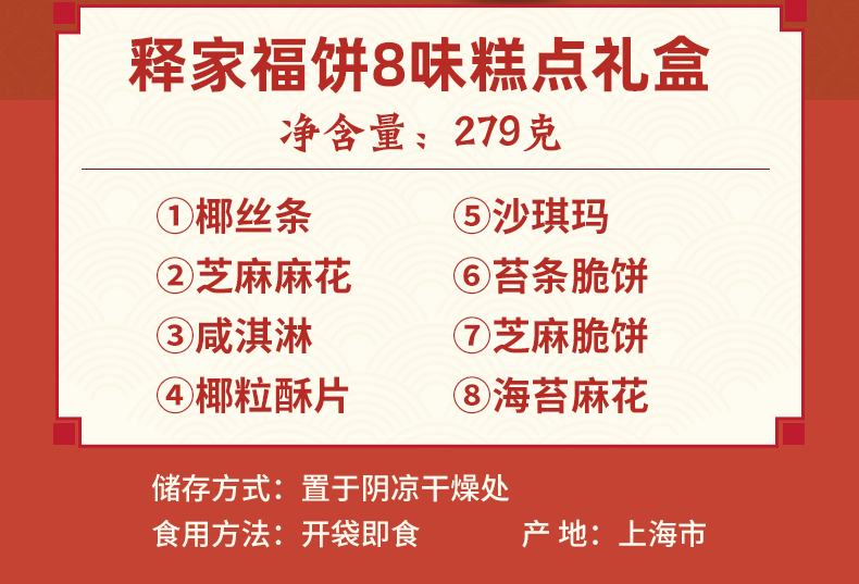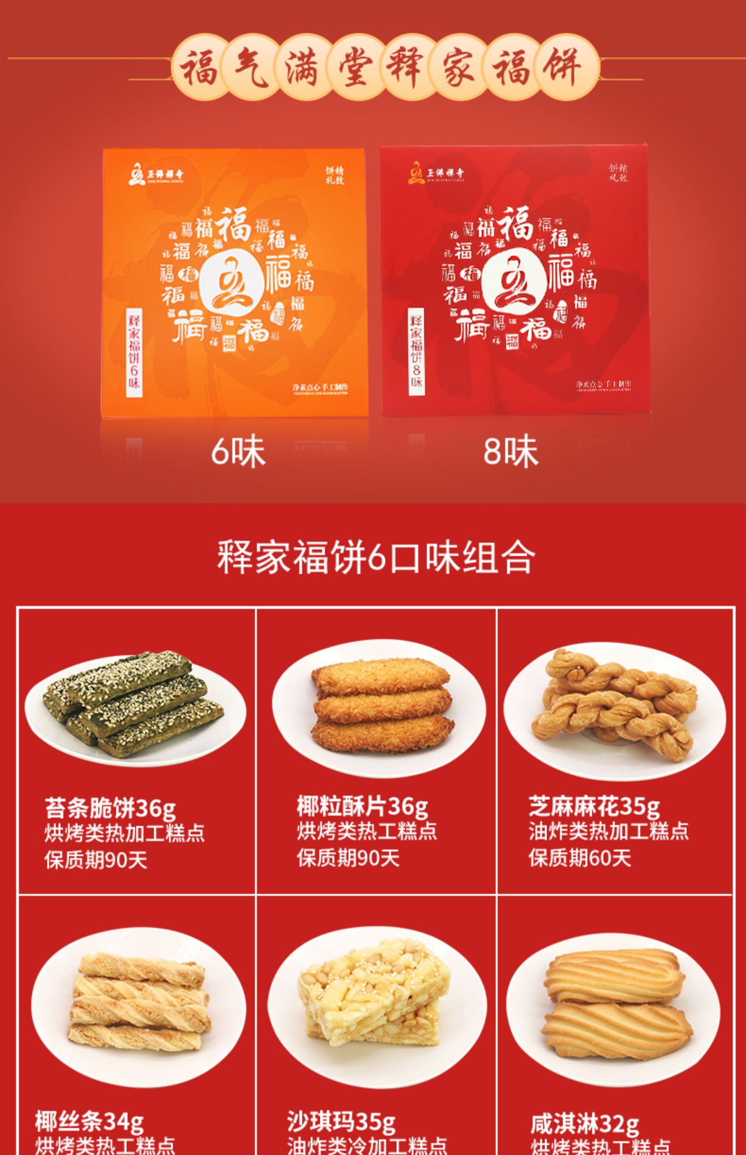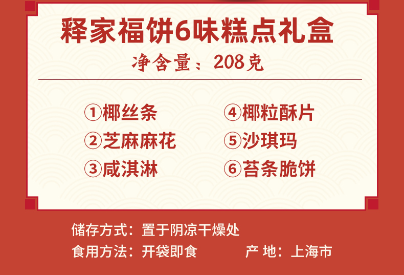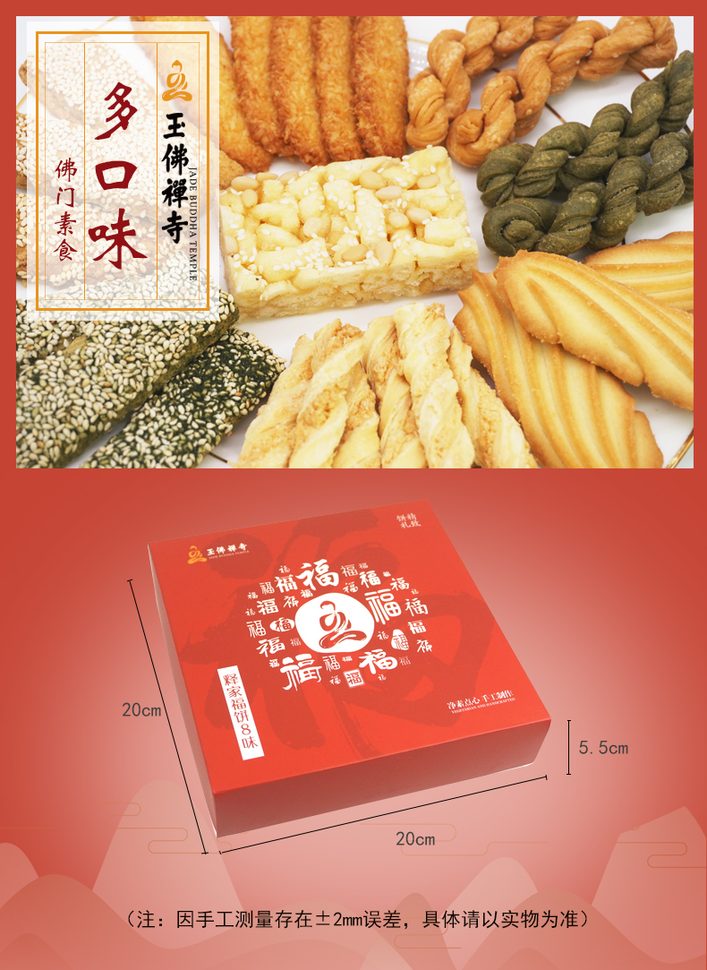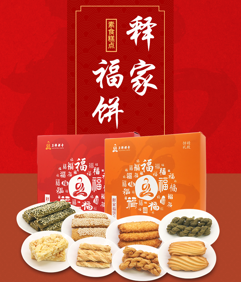 【玉佛寺】素斋糕点买就送方丈觉醒大师新年题词贴,佛门素斋糕点,倡导健康膳食文化,释家福饼6味糕点礼盒,六种美味年货,让您过个充足好年,送礼自用皆佳!
