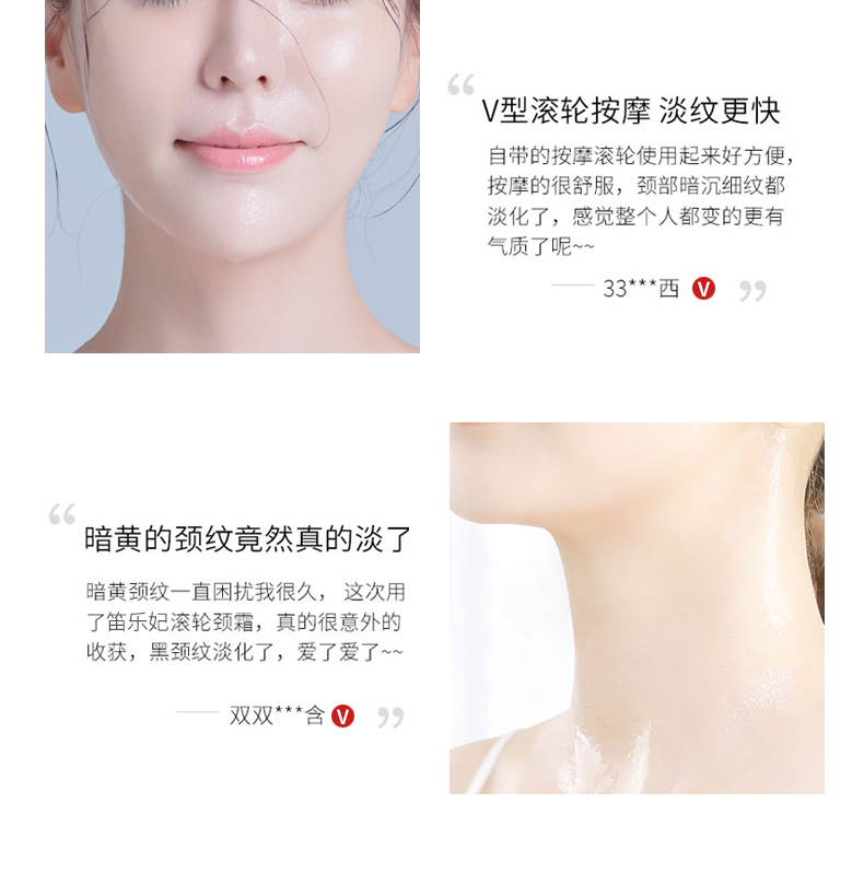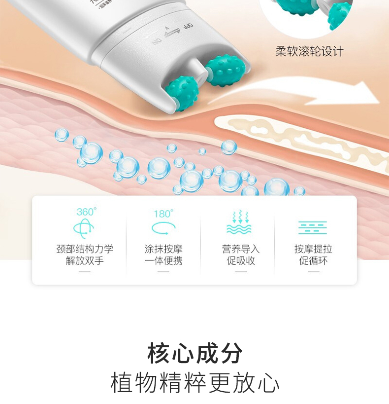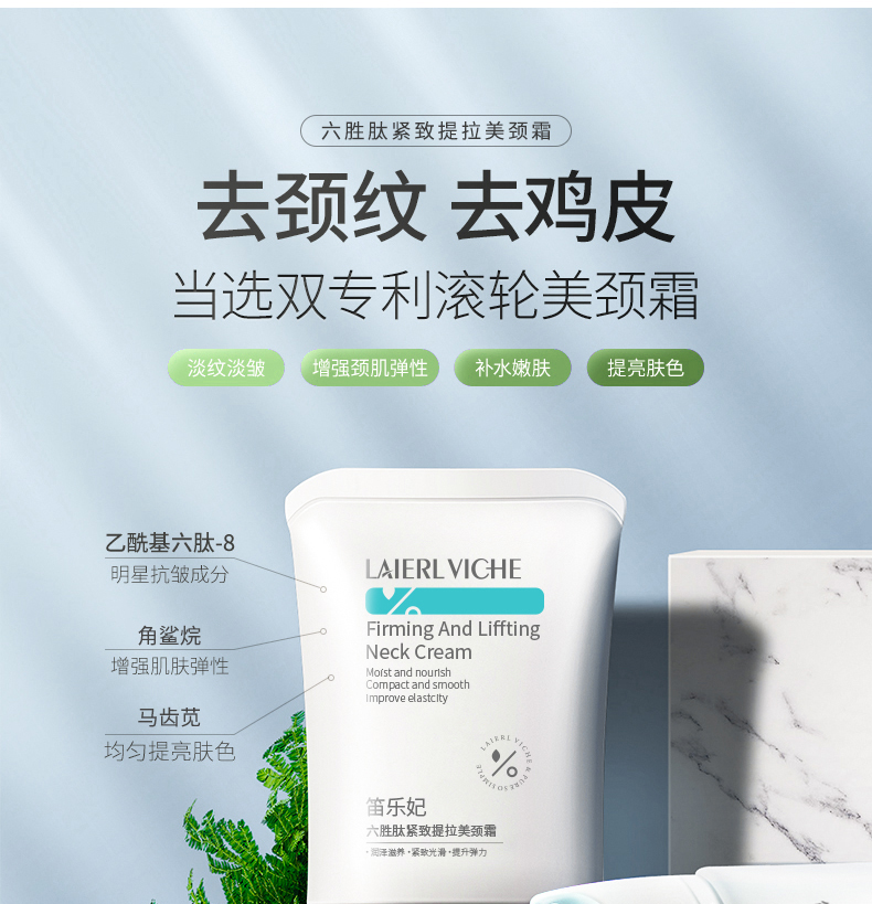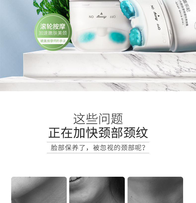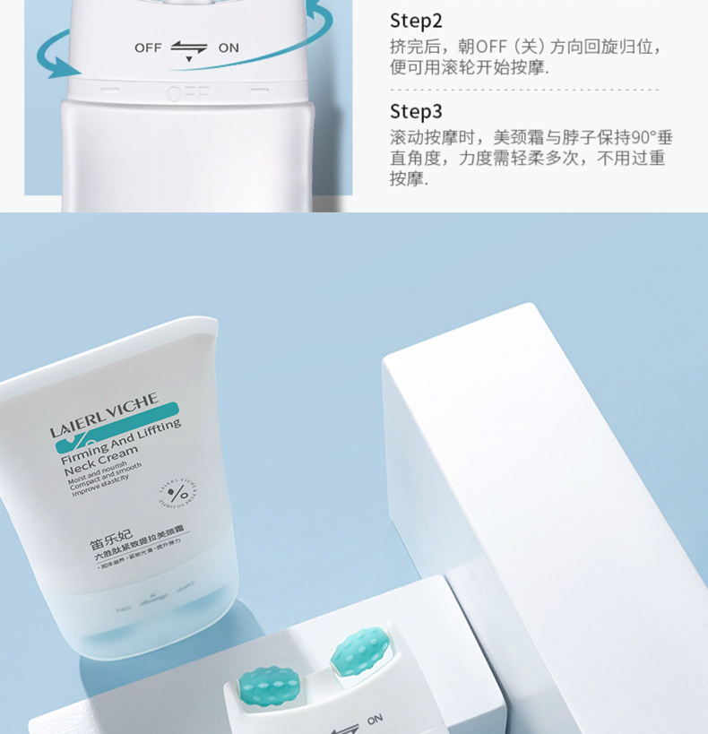 笛乐妃六胜肽美颈霜,双专利科技滚轮,按摩颈部,提拉紧致,淡化颈纹和鸡皮的同时还能令颈部更白皙细腻!颈部保养做好,年轻10岁不是梦!