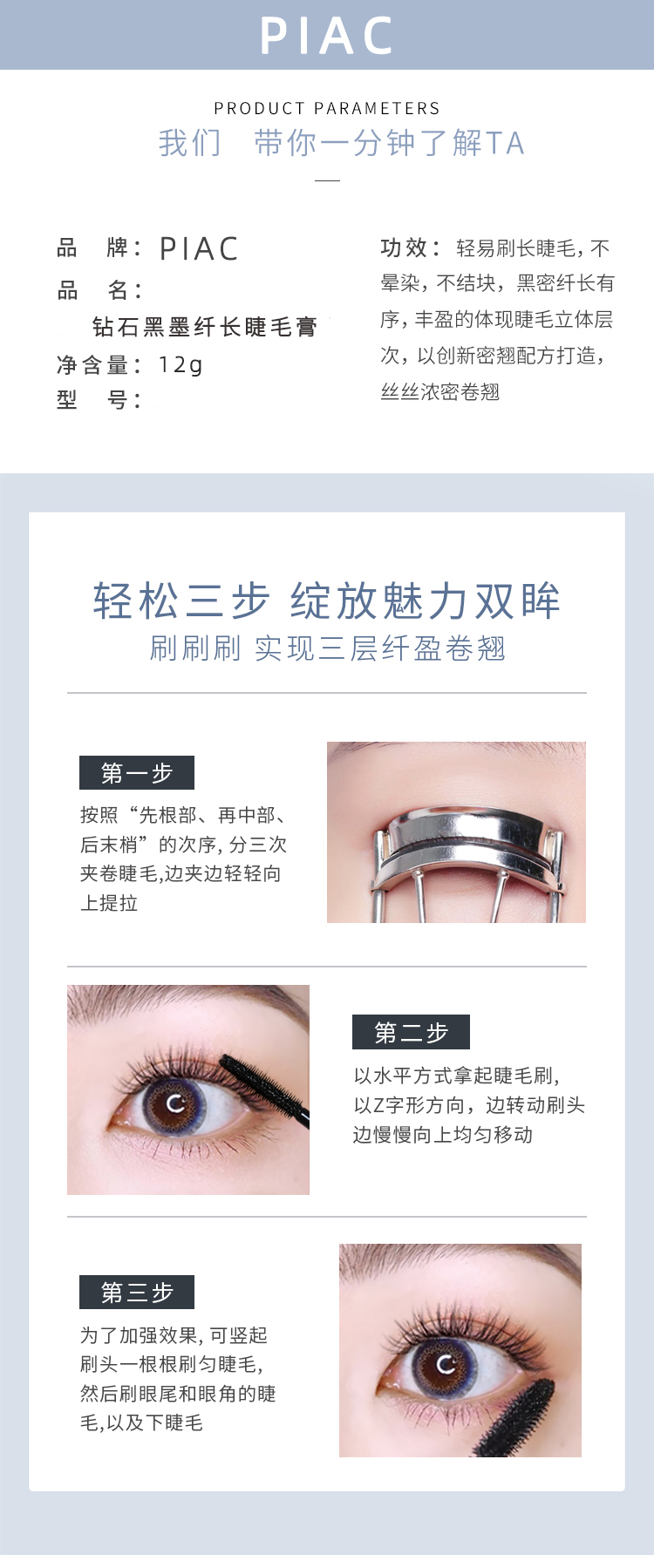 法国小众,PIAC钻石纤长睫毛膏,女浓密持久,自然卷翘,防水增长不易晕染【赠送运费险】