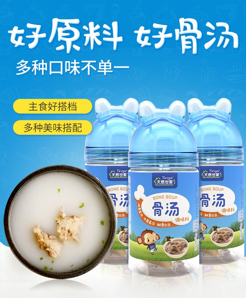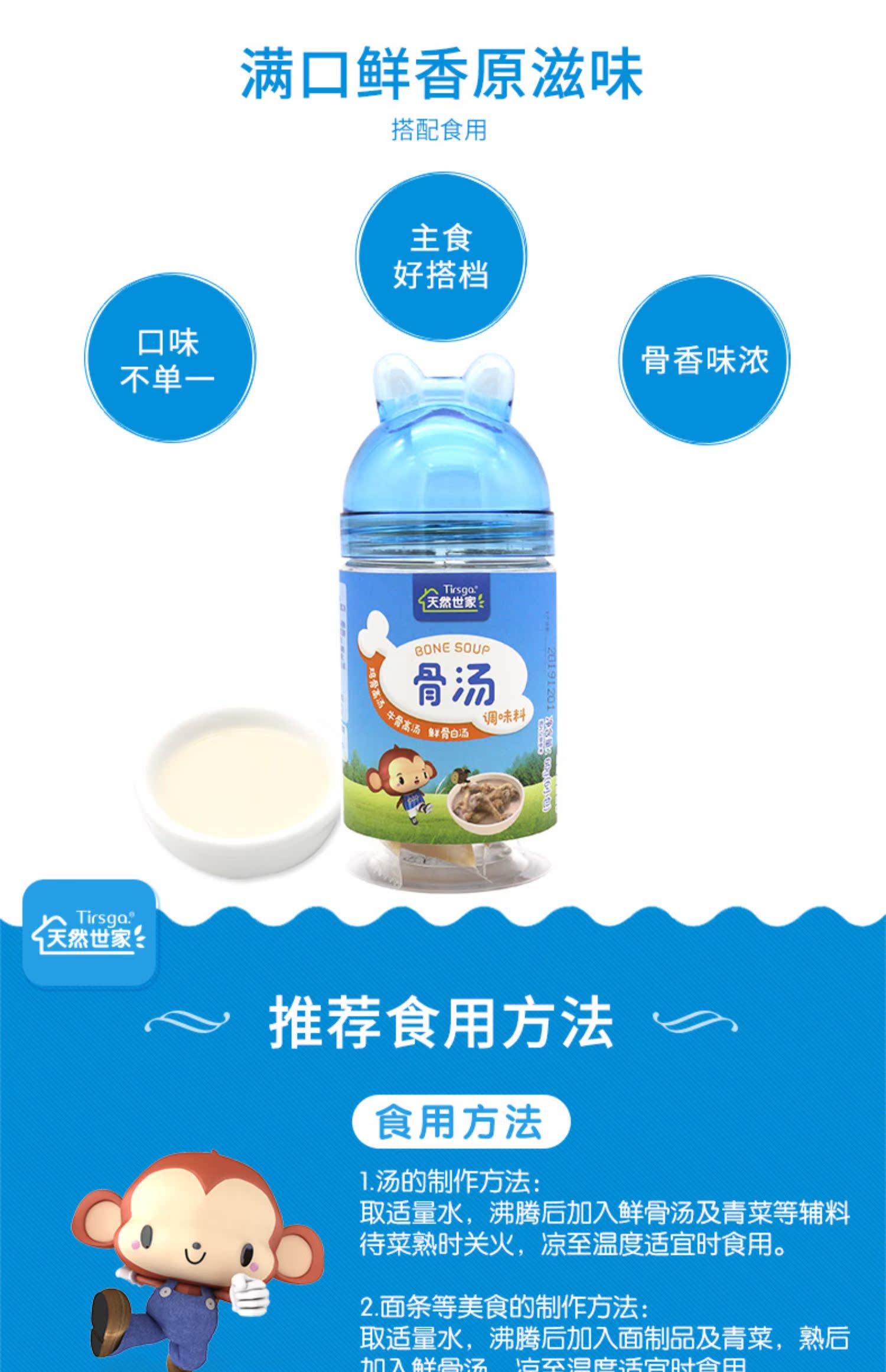 天然世家值得信赖!安全,健康,吃得放心,骨汤3罐套餐,三种口味,儿童宝宝辅食,宝宝面条调味品【赠运费险】