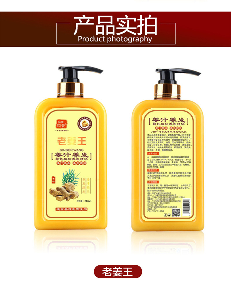 【生姜洗发水500毫升】泡沫细腻,强根固发,改善头痒,去头屑,温和滋养,保持发质柔顺光泽!女神必备!