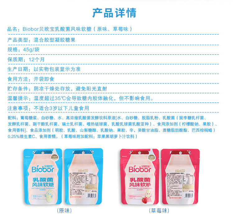第二件7.9贝欧宝乳酸菌软糖45g*3袋