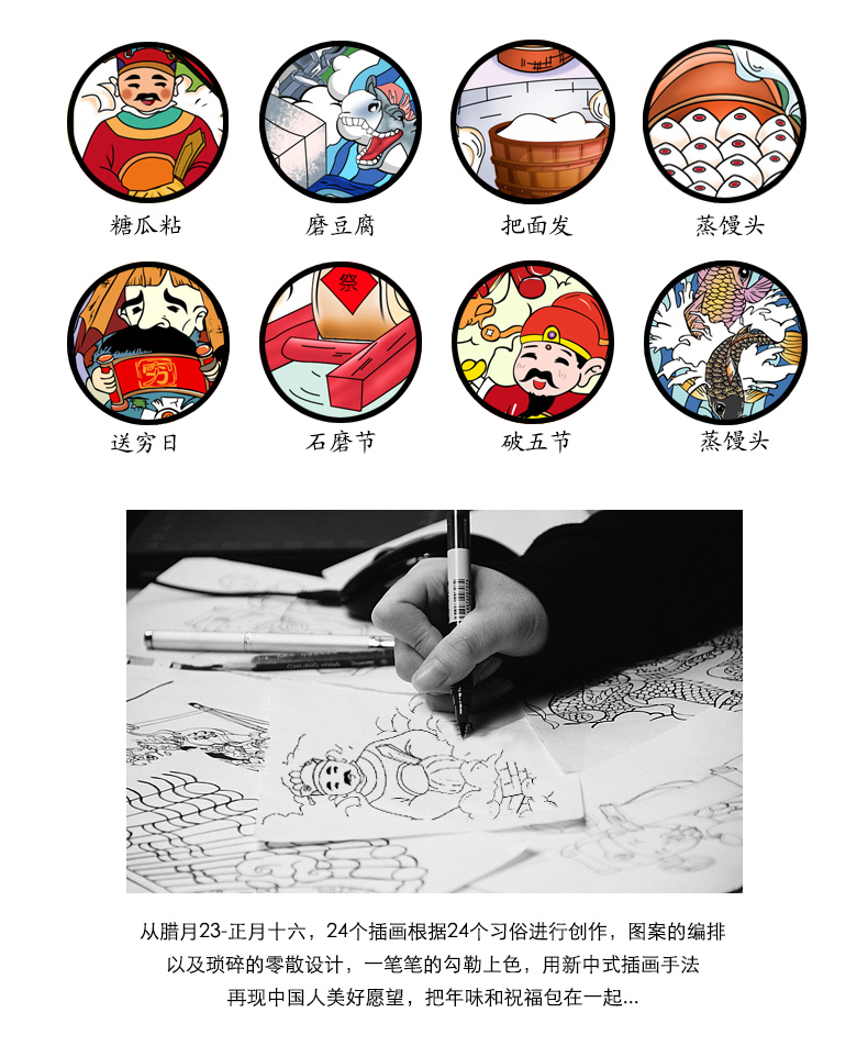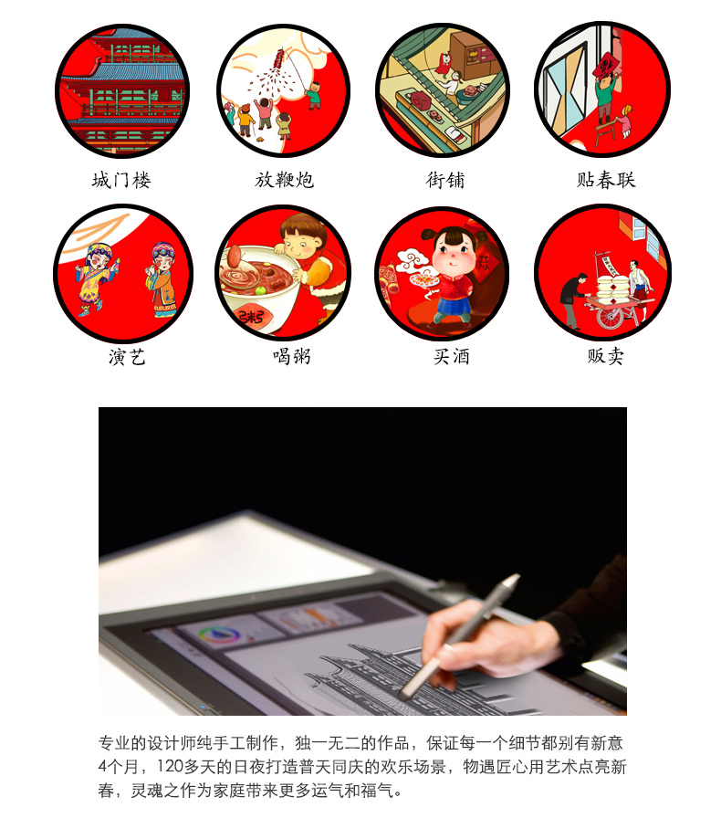 原价218元,现在秒杀18.8元,【纯手绘版】大师手绘珍藏版,一副涤荡心里的精神之作,一副无法复制的绝版艺术,不一样的年味风格;含对联,门神、年画、红包、福字、春条,原创设计。