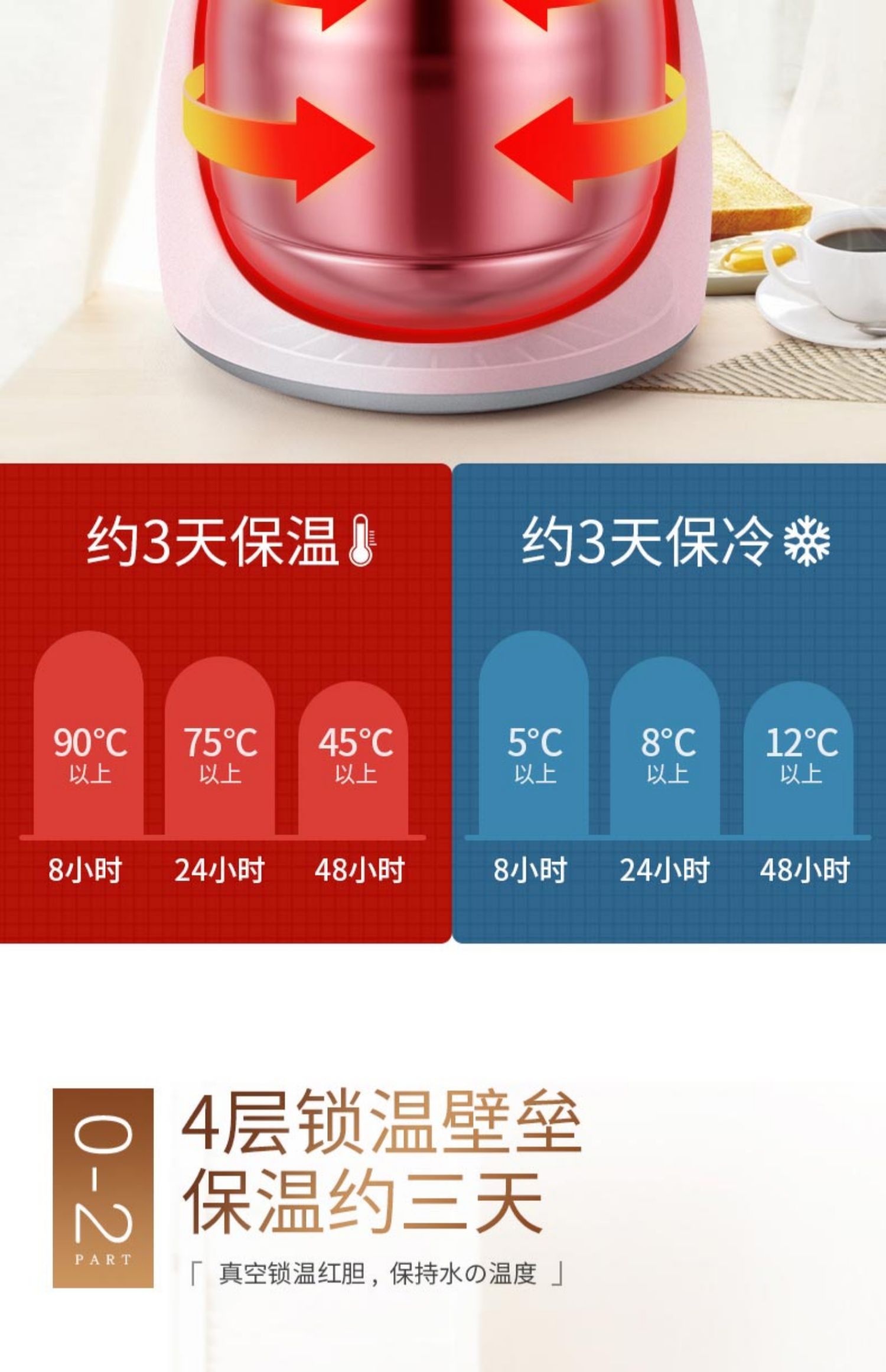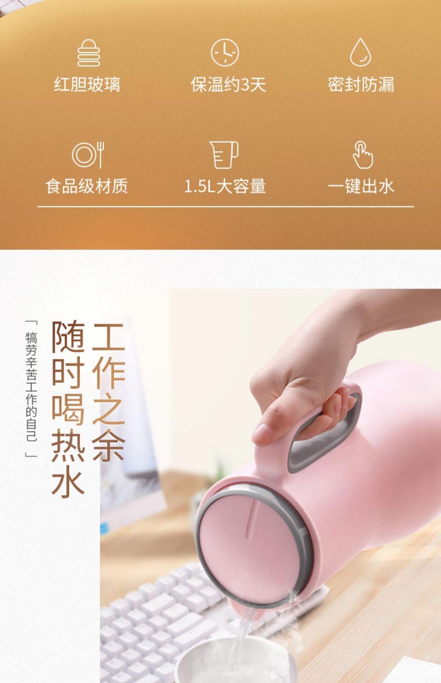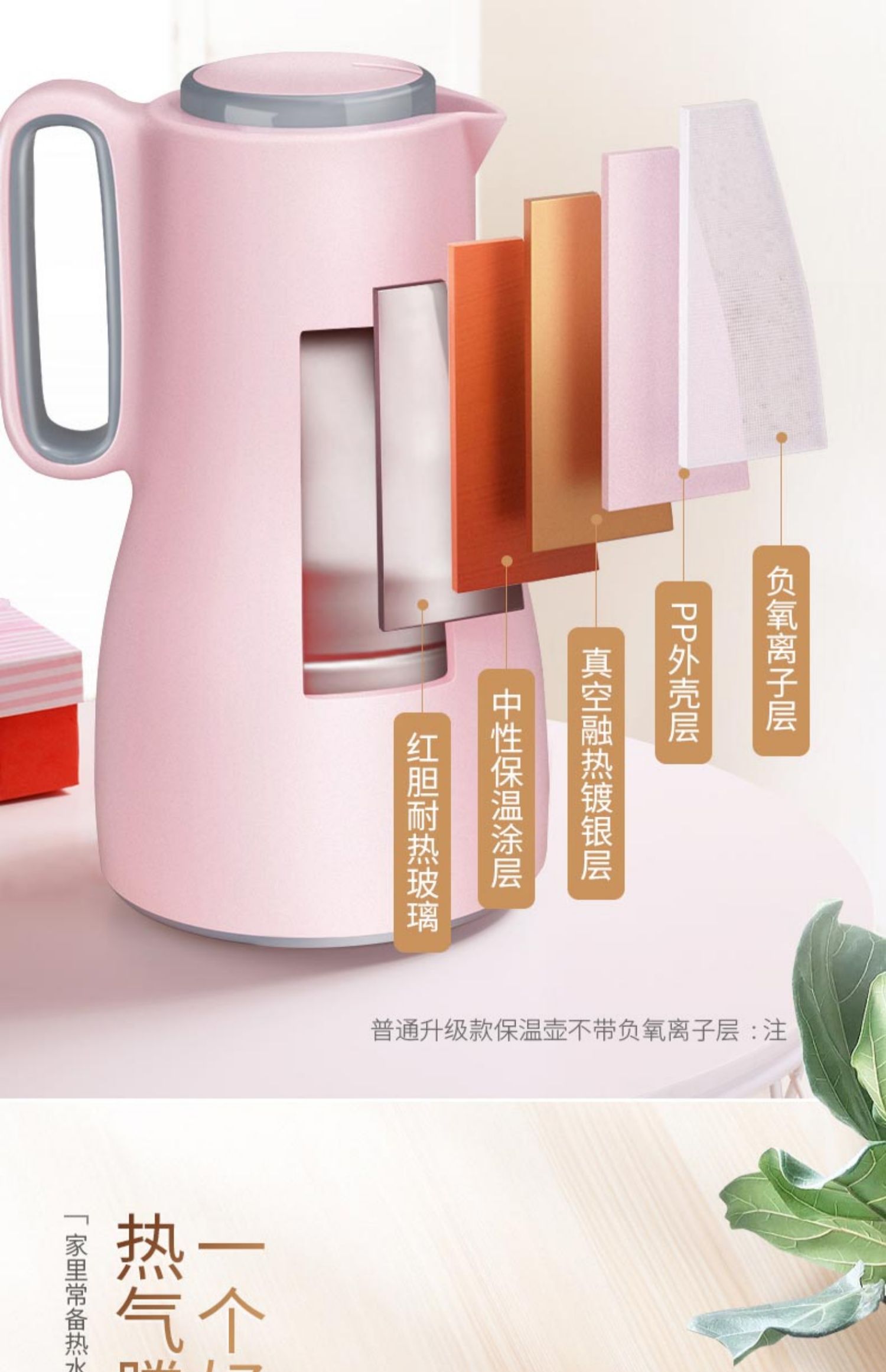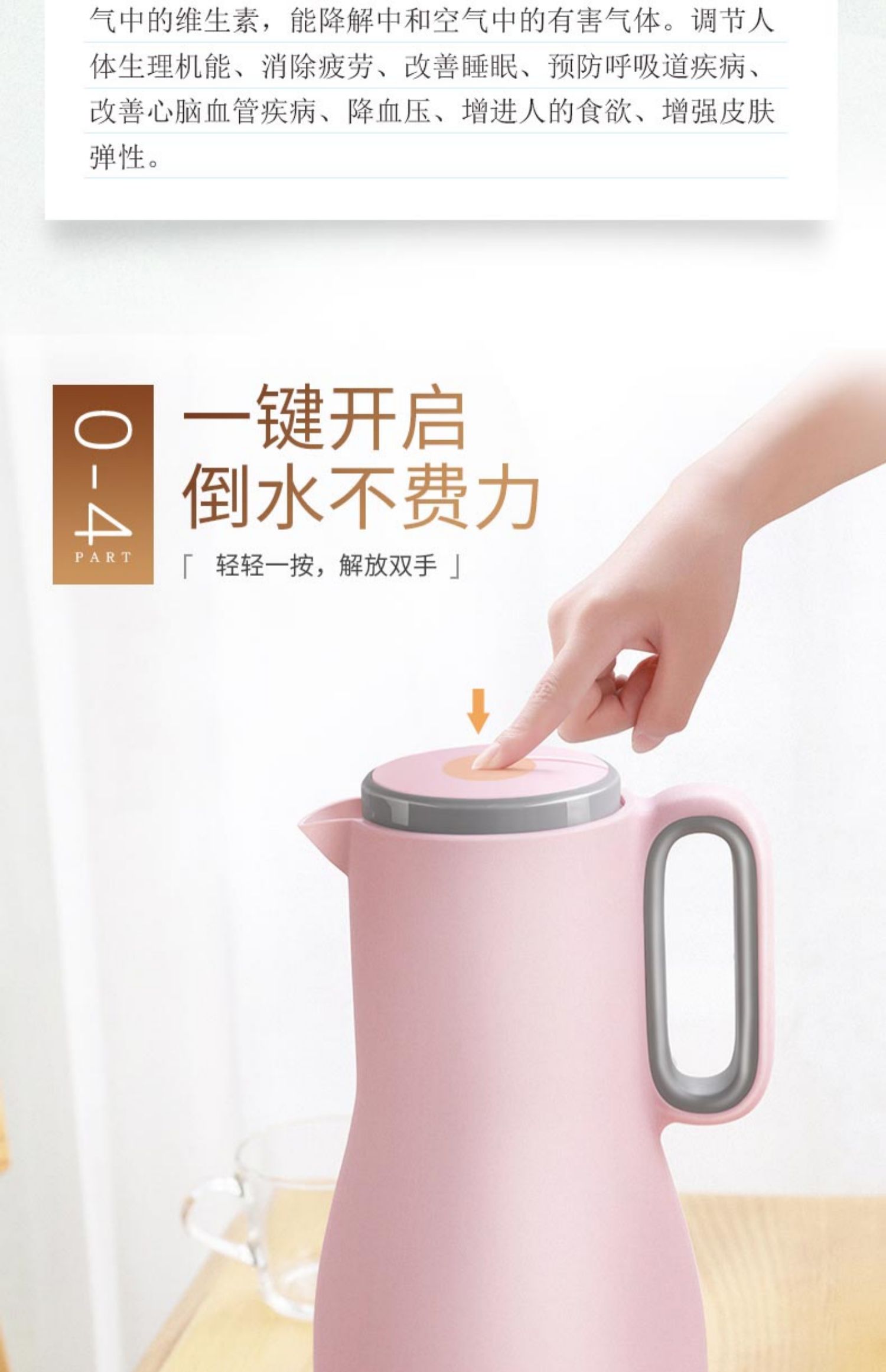 AFT负离子保温壶,红胆玻璃真空隔热,4层锁温加固,72小时长效锁温,一键出水轻松操作,关注您与家人的饮水健康,多种颜色可选!