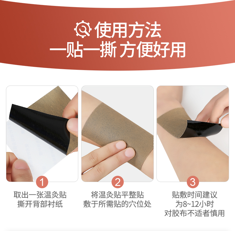 不是普通的艾灸贴!!!40度恒温,持续发热8小时。边艾灸边发热。温灸关节,相当于灸疗。有效祛湿散寒,用上就感觉肚子暖暖的,可以缓解痛经、促进消化!