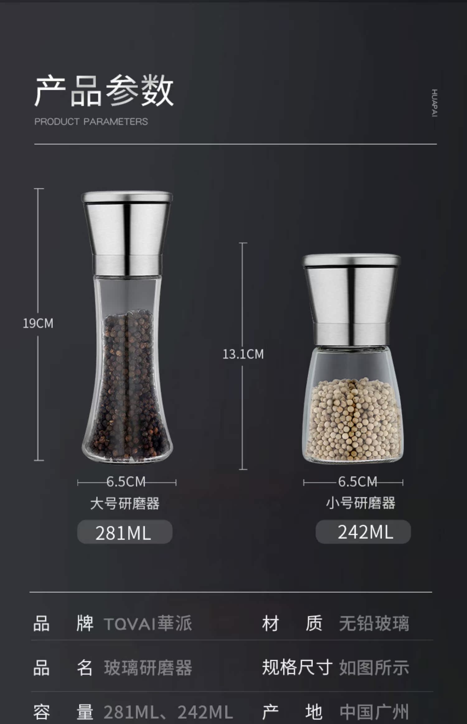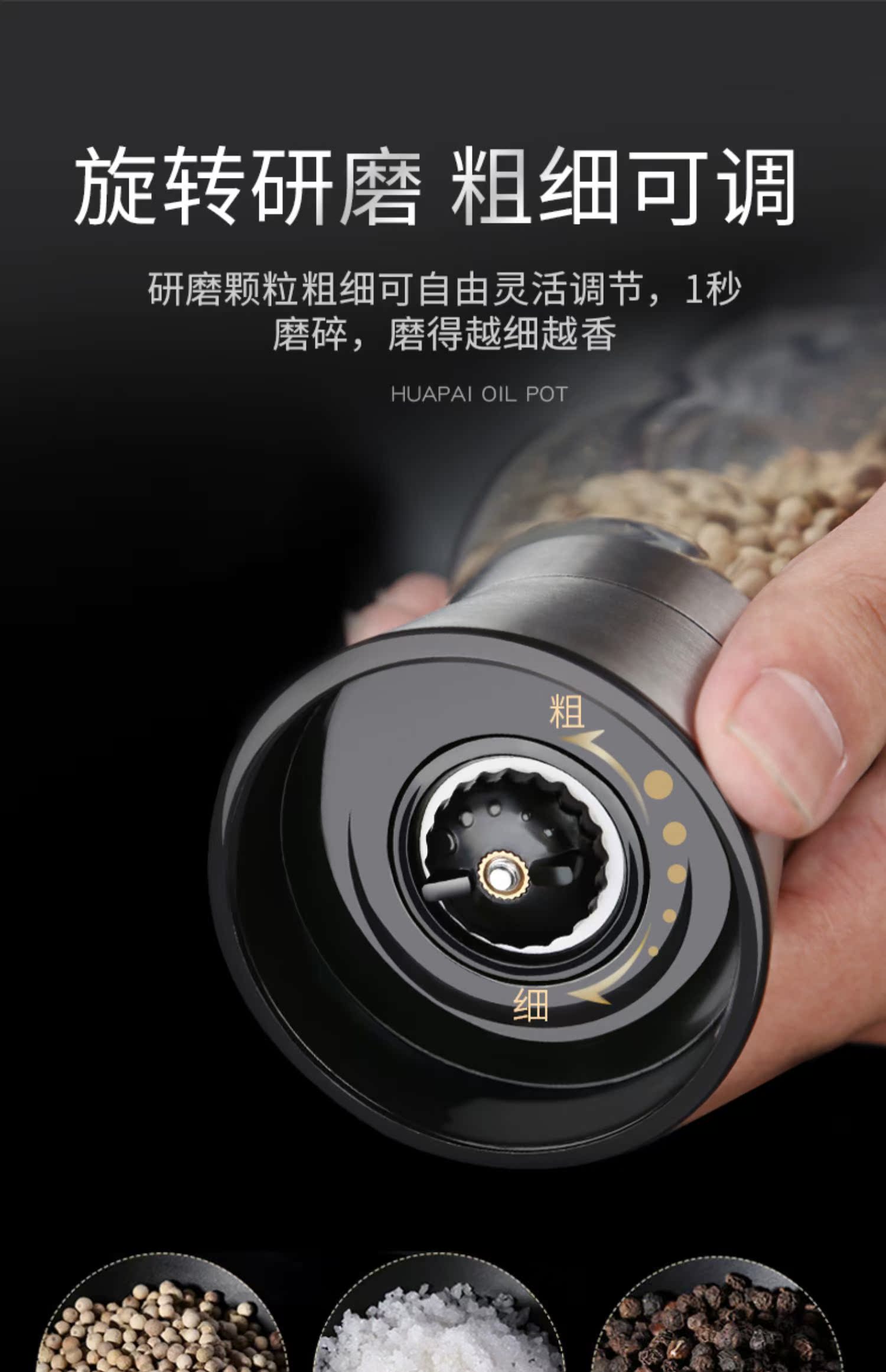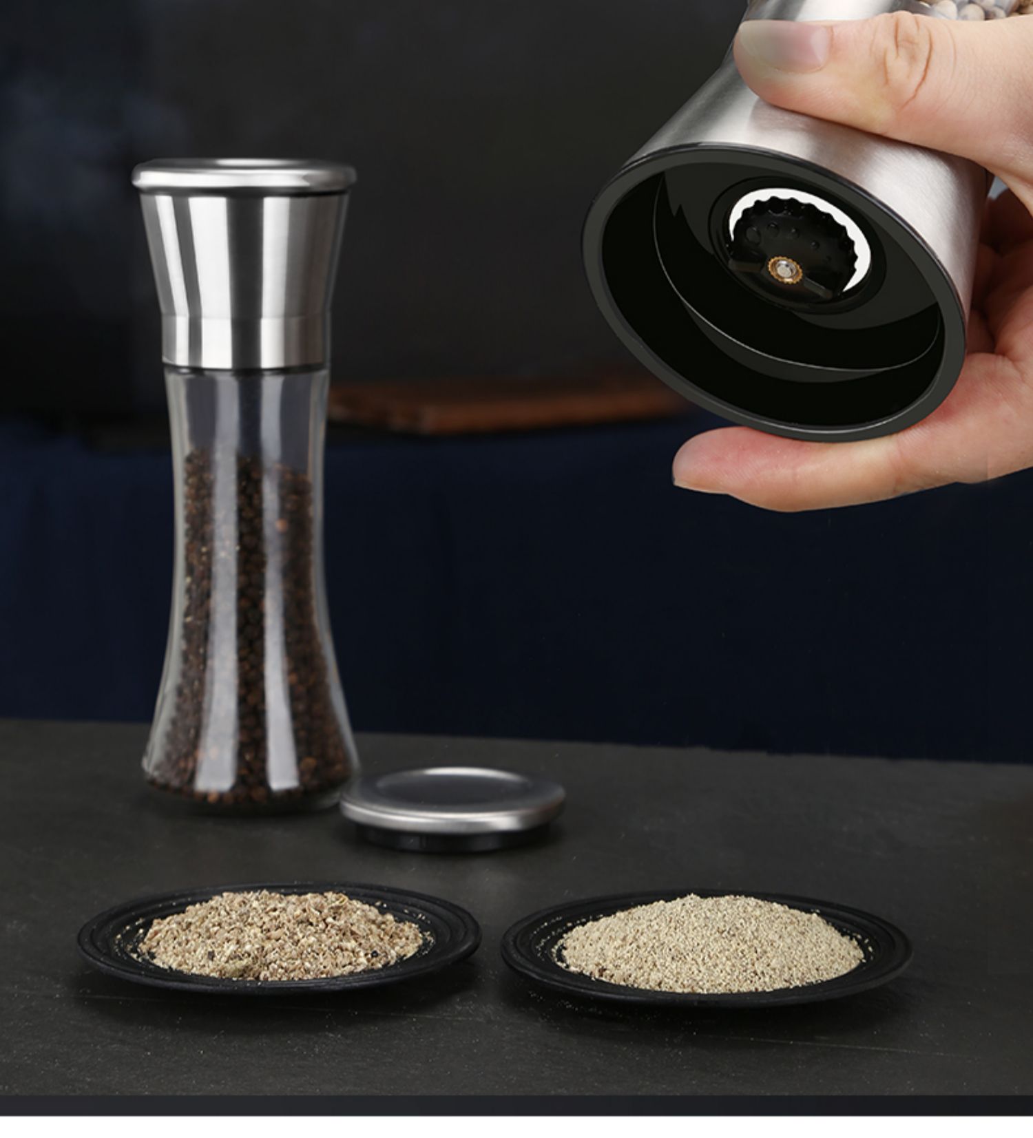 华派胡椒手动研磨器玻璃款,旋转研磨,粗细可调,内芯硬度高,耐磨损,耐腐蚀,防尘盖可防虫尘,可水洗,矜磨好用.