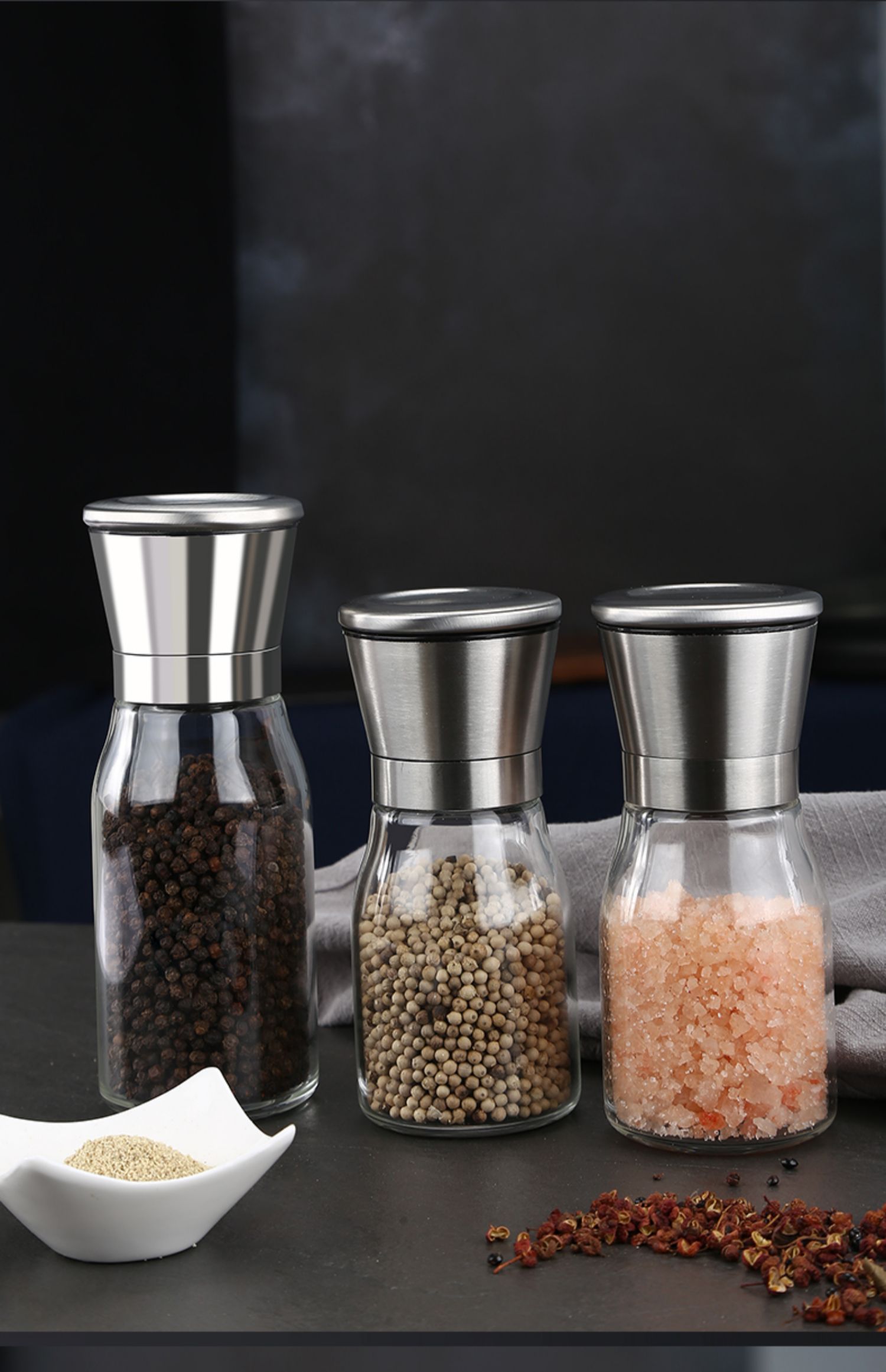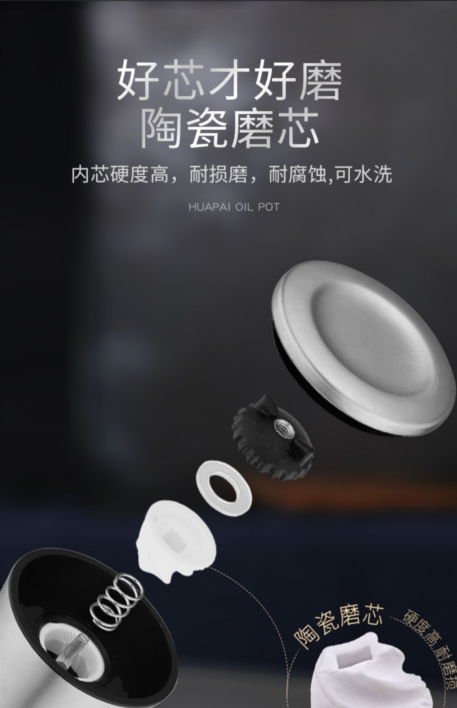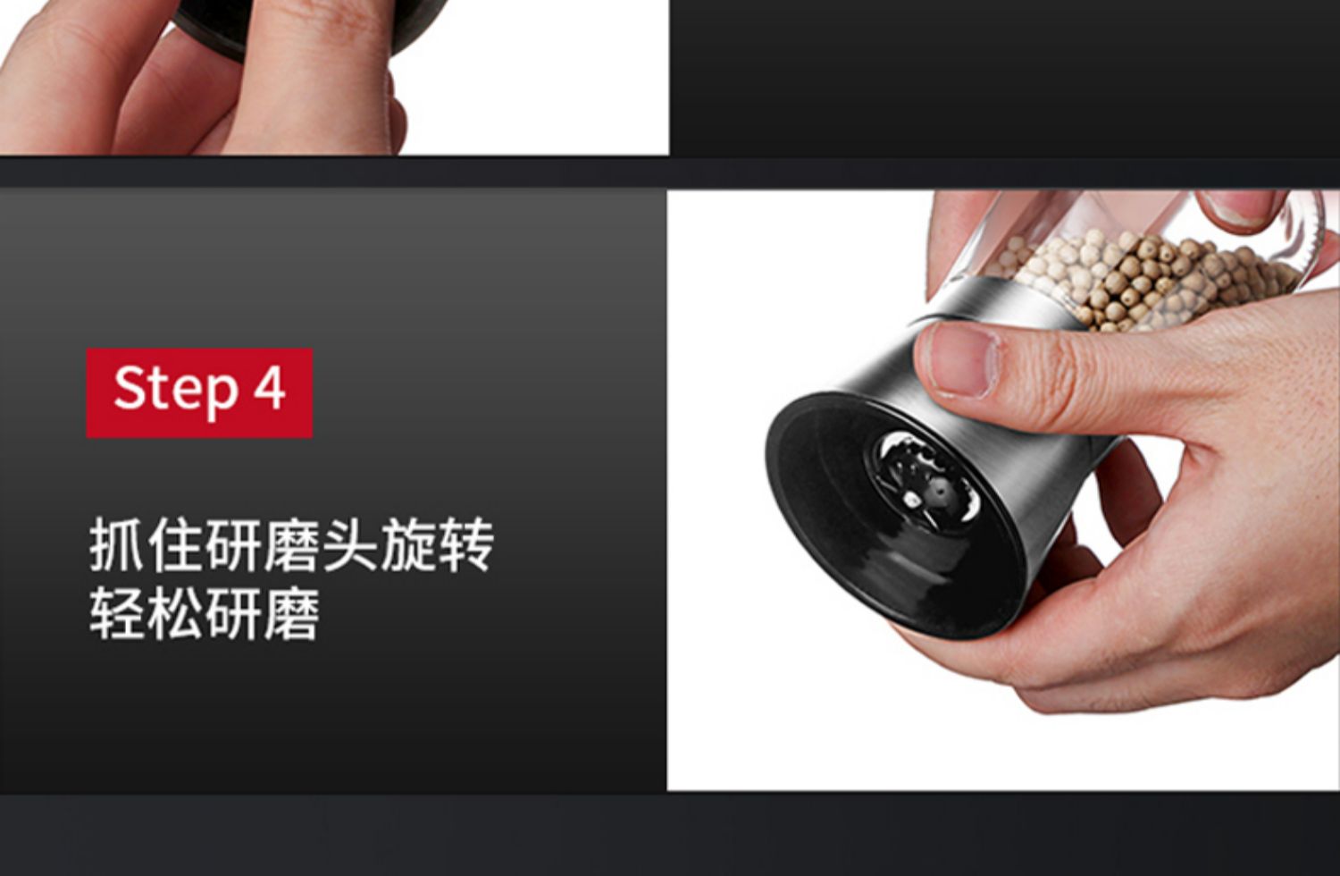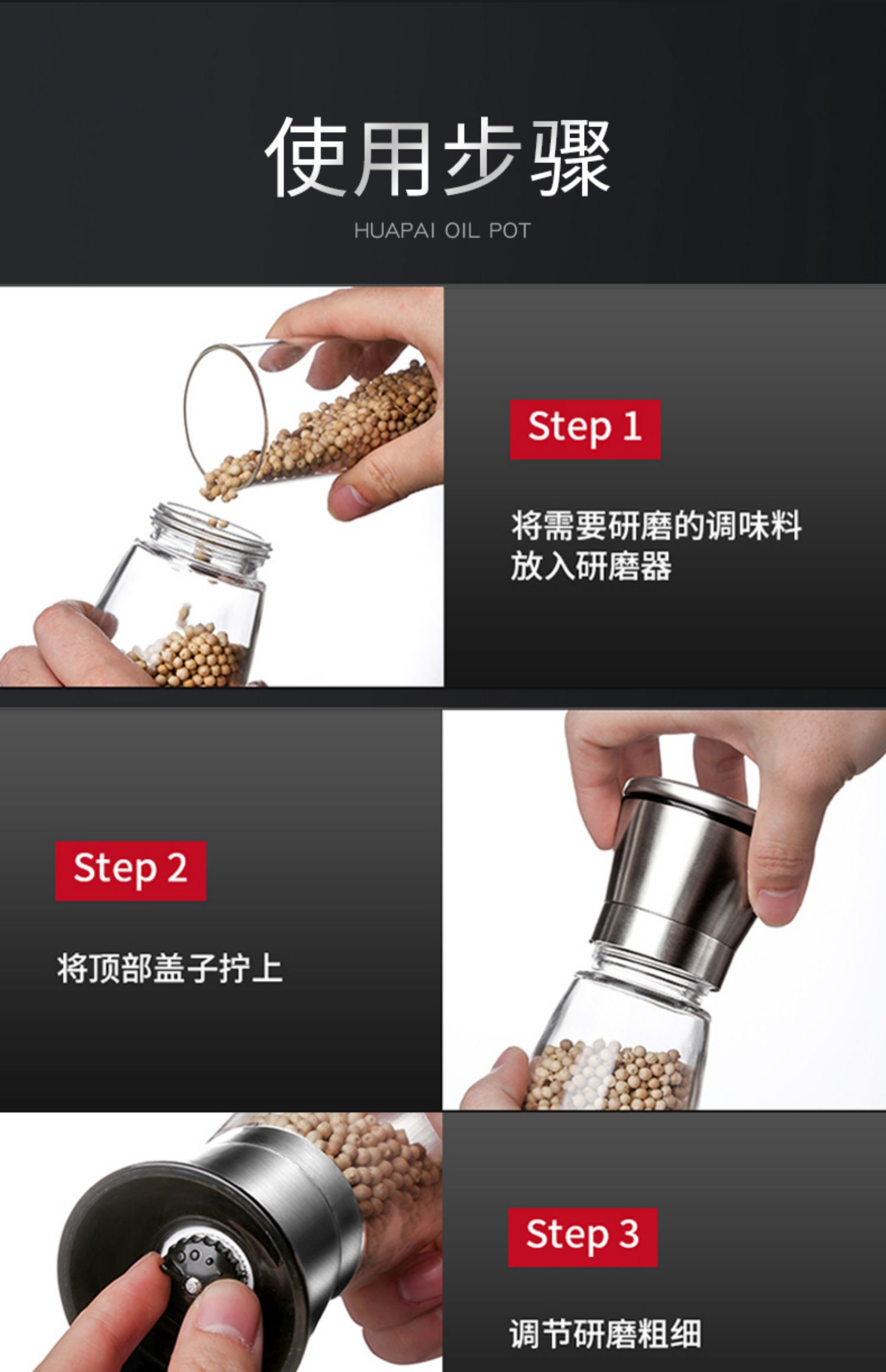 华派胡椒手动研磨器玻璃款,旋转研磨,粗细可调,内芯硬度高,耐磨损,耐腐蚀,防尘盖可防虫尘,可水洗,矜磨好用.