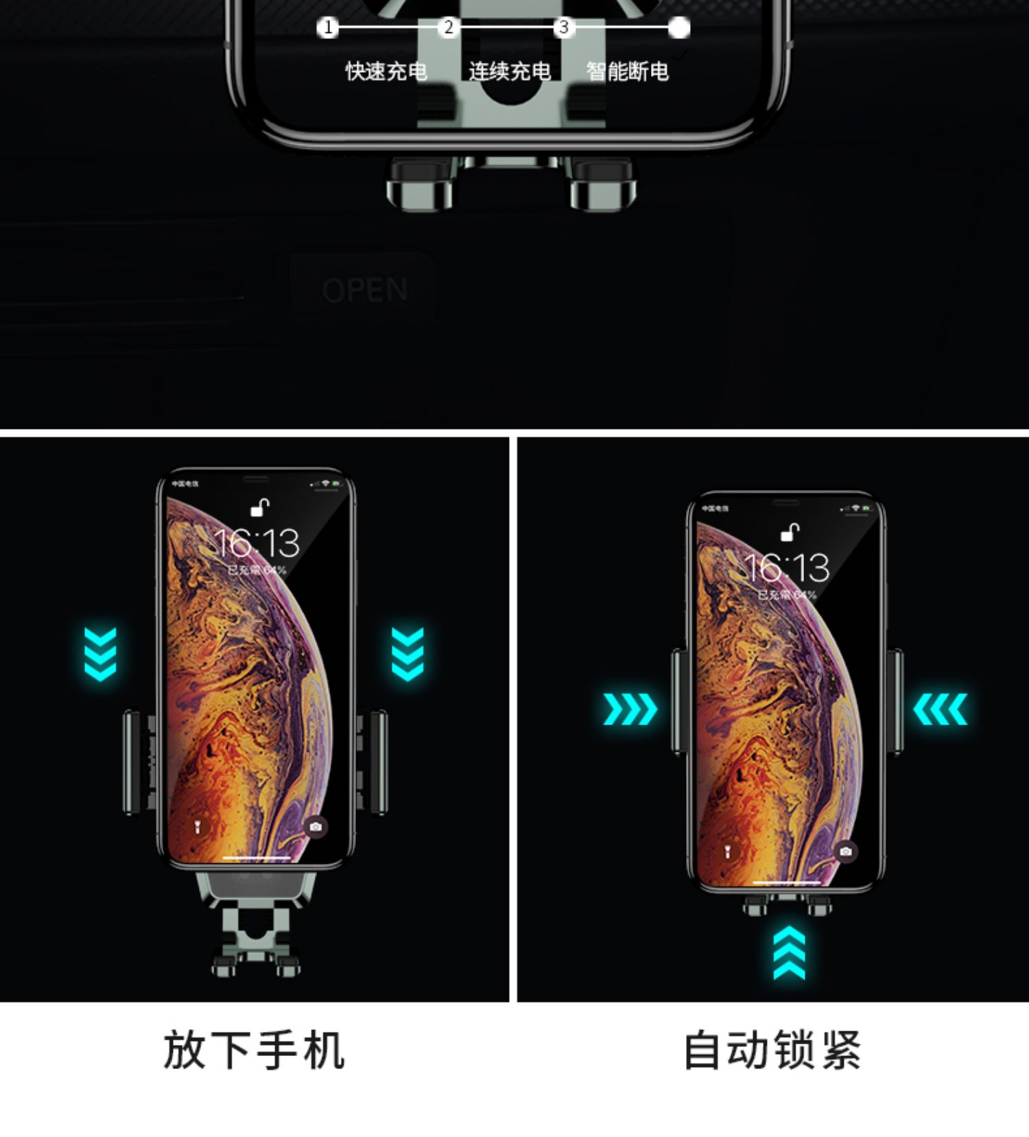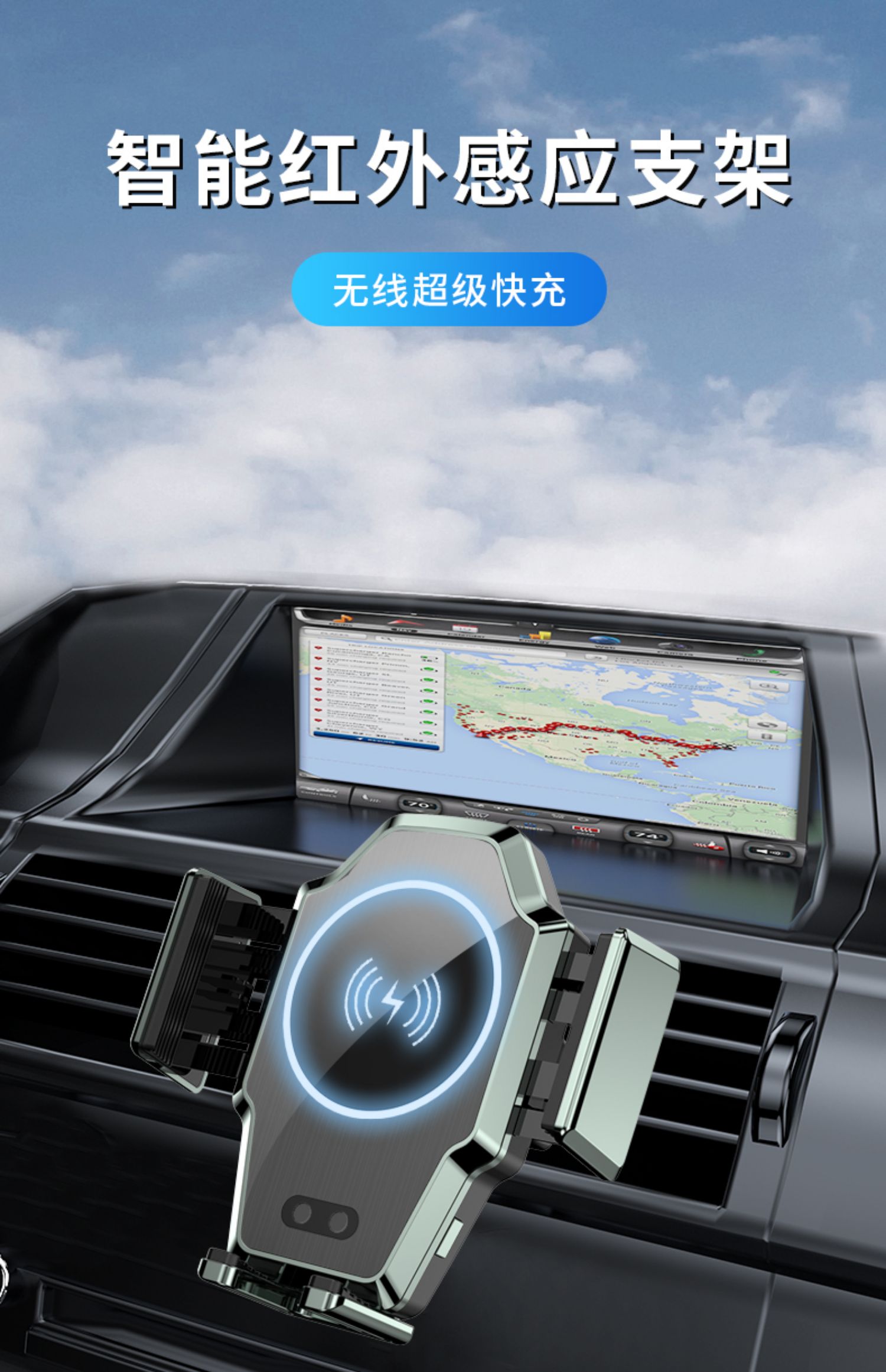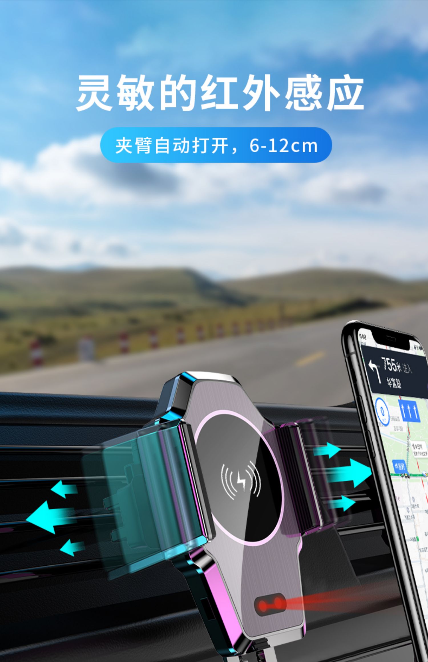 手机无线充电器,车载充,自动感应支架,导航支架,红外感应,自动夹臂,智能快充,充满自动断电,出行好帮手~