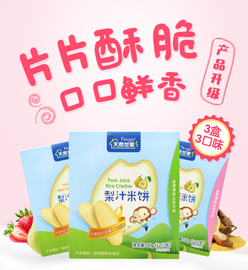 天然世家值得信赖!米饼3盒套餐,食品/磨牙饼干,宝宝辅食儿童零食安全健康,吃得放心,宝宝儿童零食辅食,口感鲜香,新鲜美味,片片脆小袋分装,严控品质妈妈更放心【赠运费险】