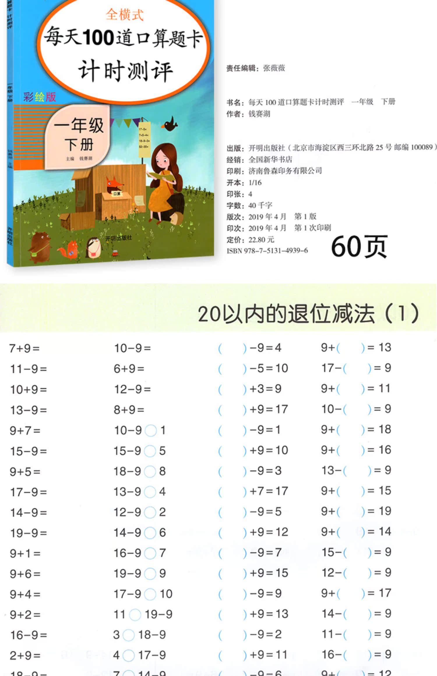 老师推荐!全新彩绘版,题量大题型全,由易到难~每天100题,能增强孩子逻辑思维能力,提高运算速度,轻松掌握算数!