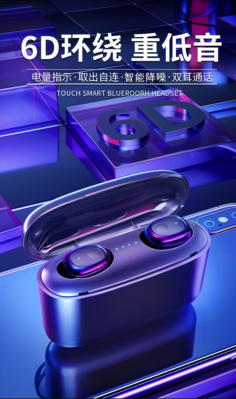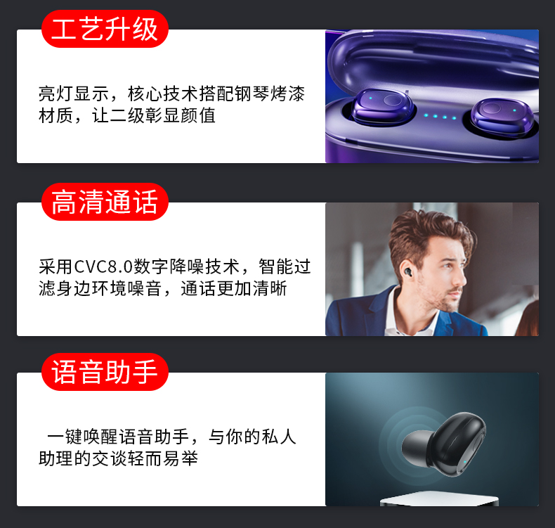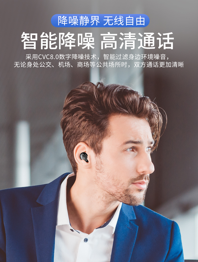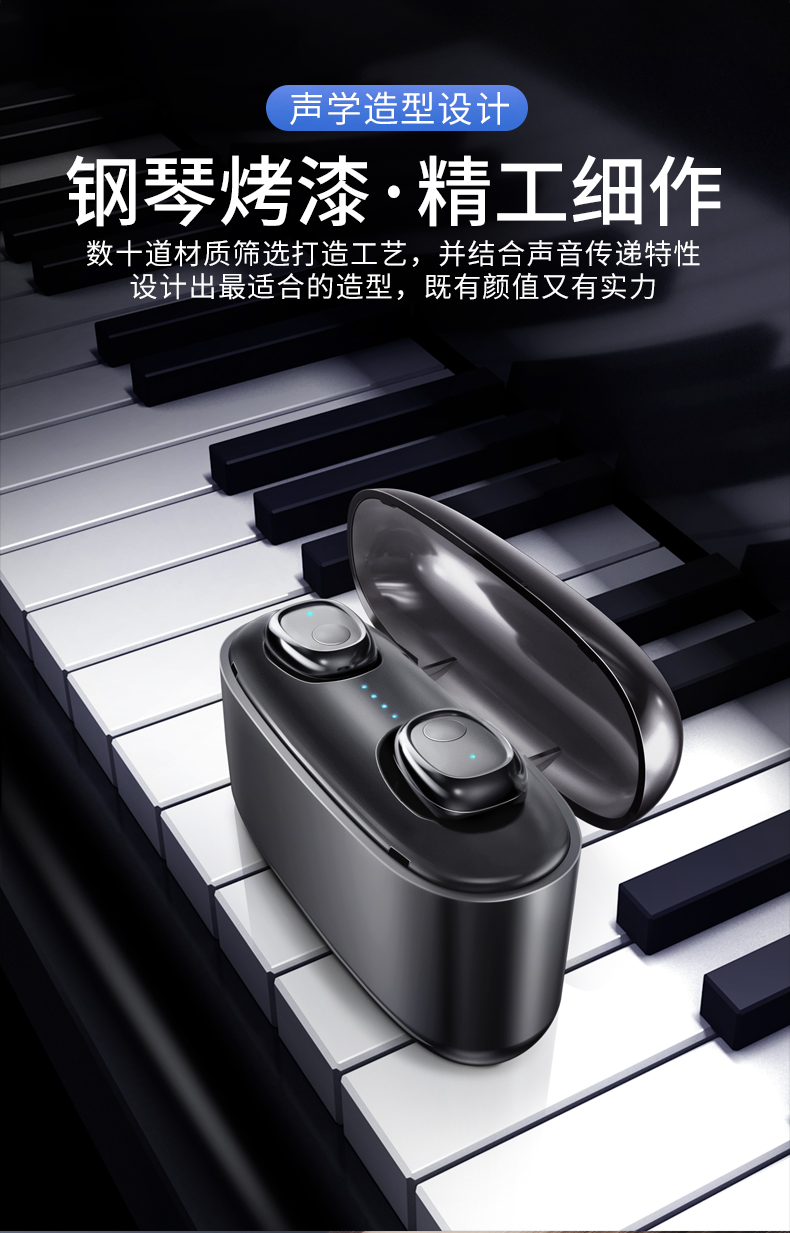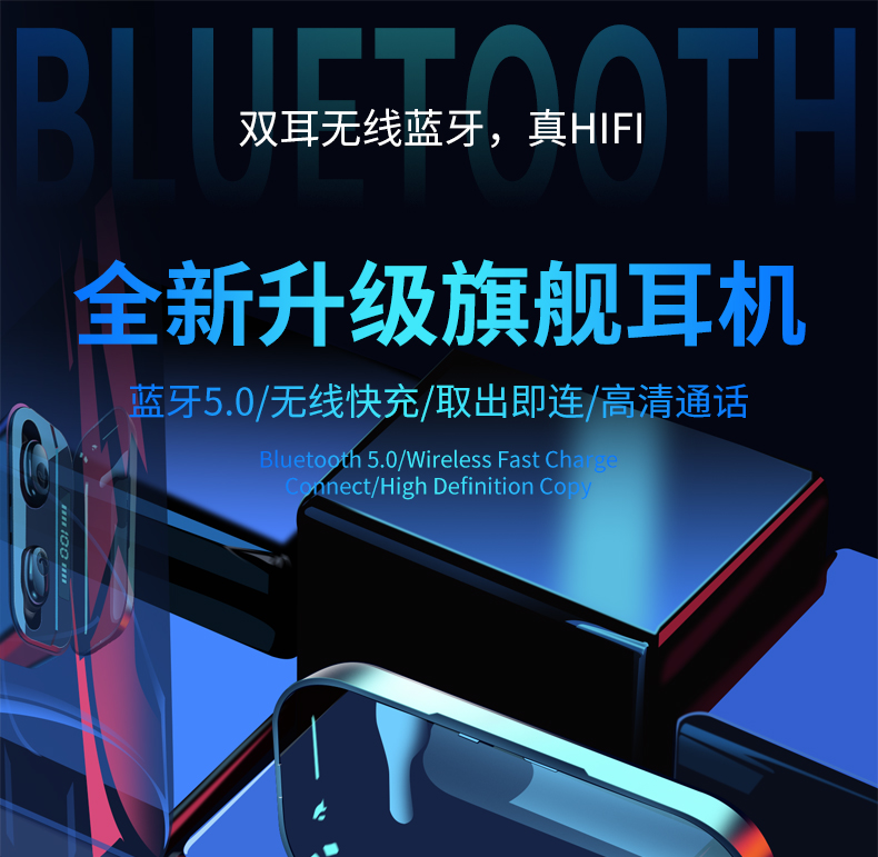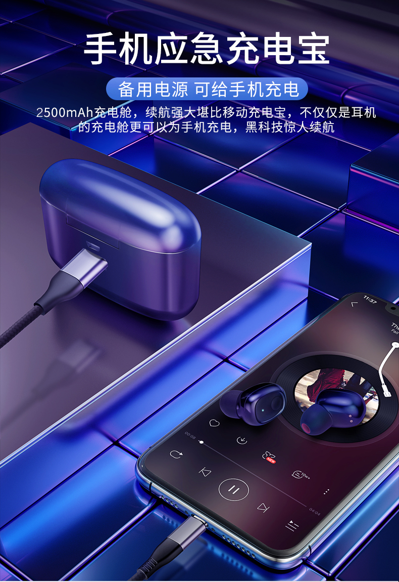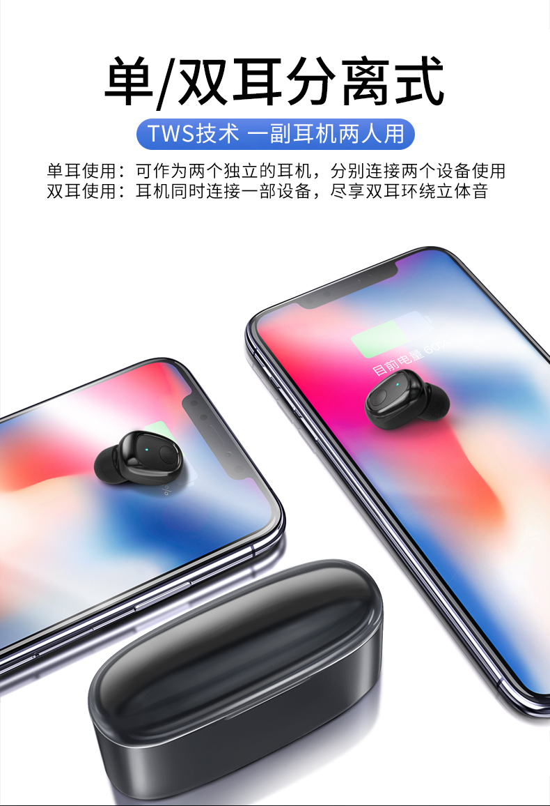 蓝牙耳机5.0,自动开机配对,一键切换上下曲,调节音量,唤醒Siri,8D立体环绕音效,多功能LED充电舱,既可为手机应急充电,还可当手机支架看电影