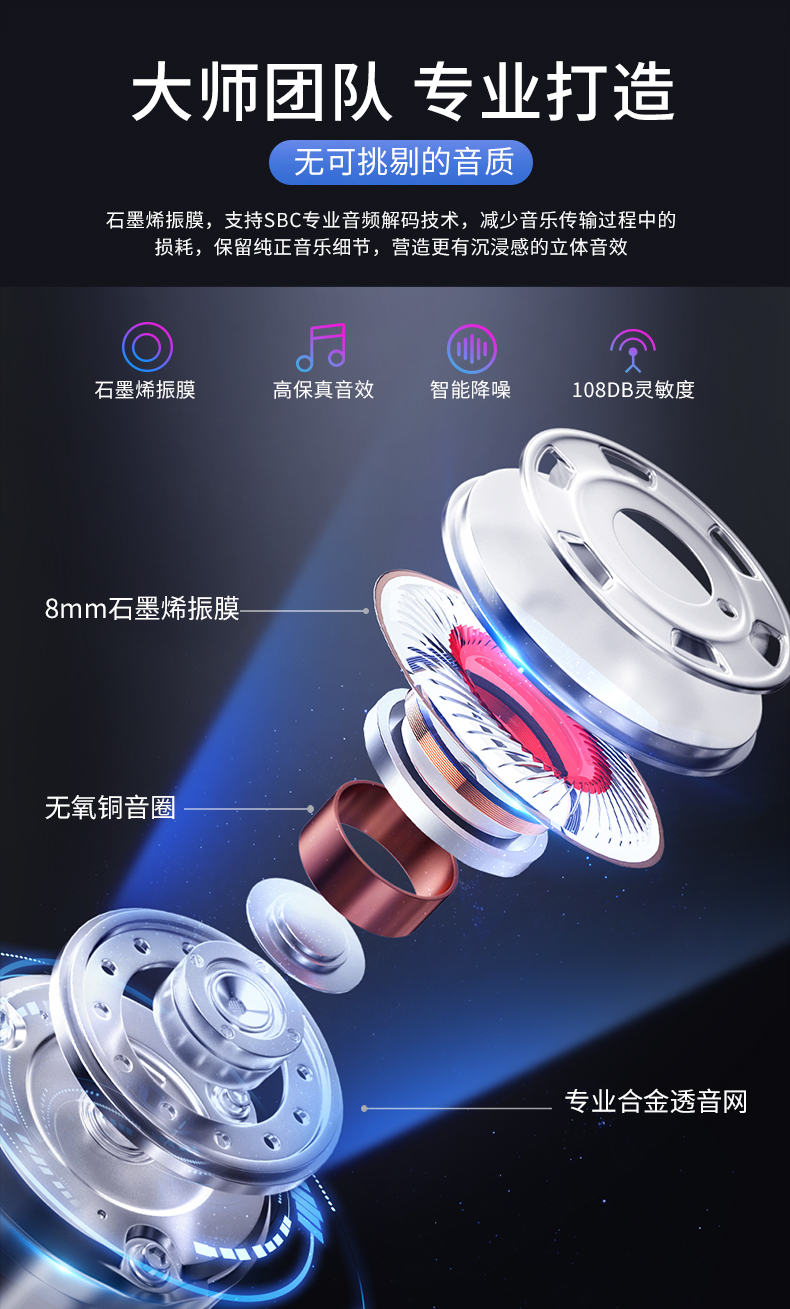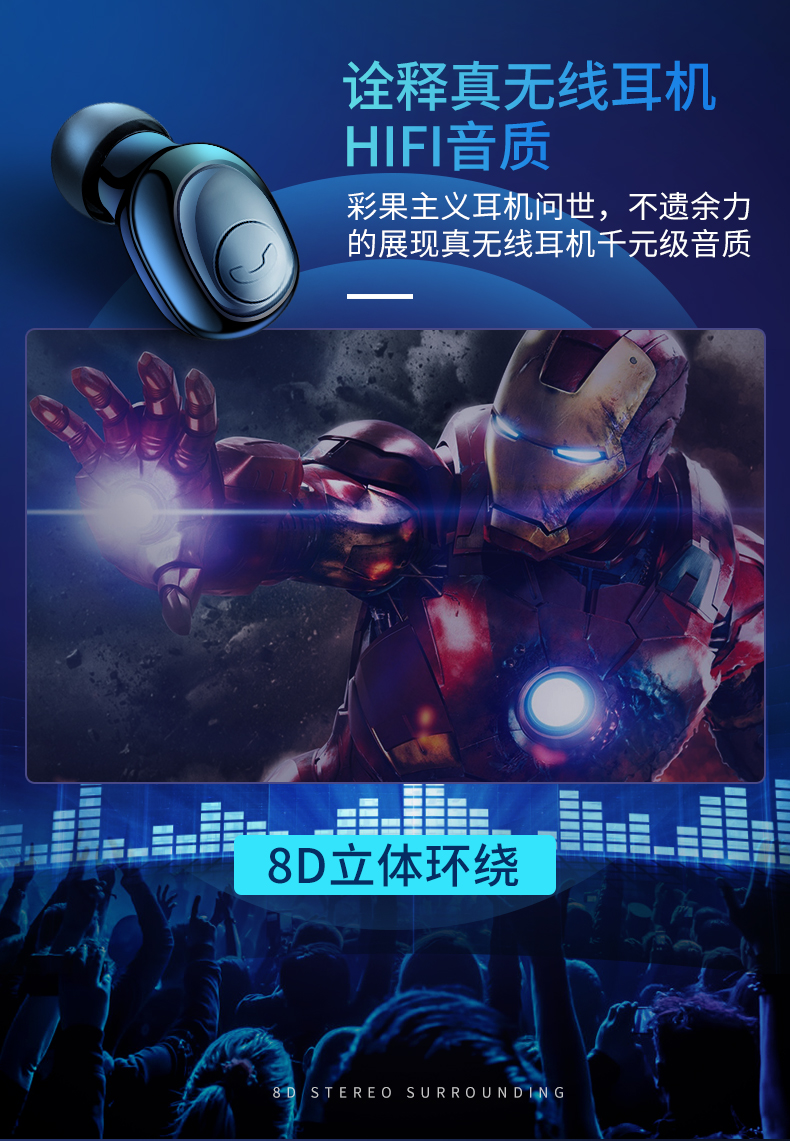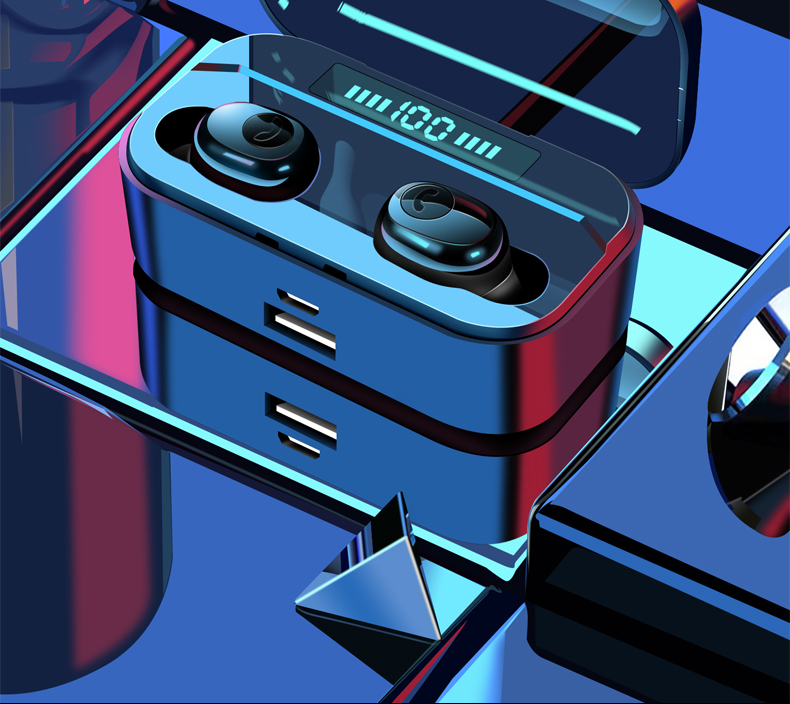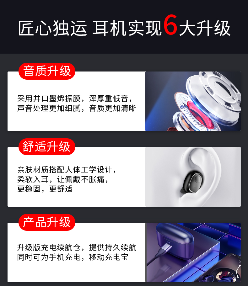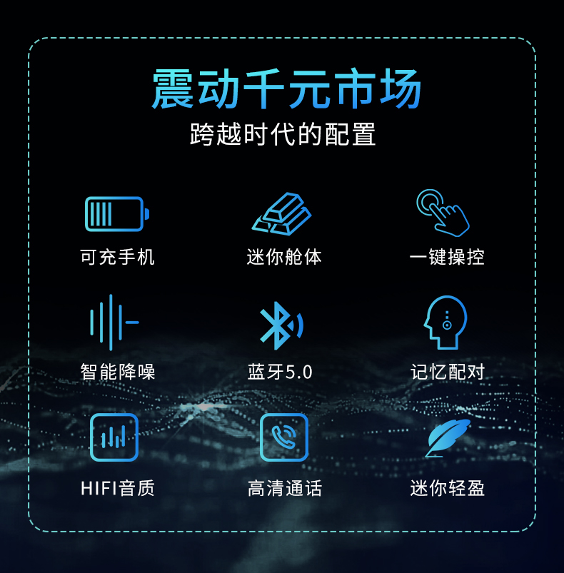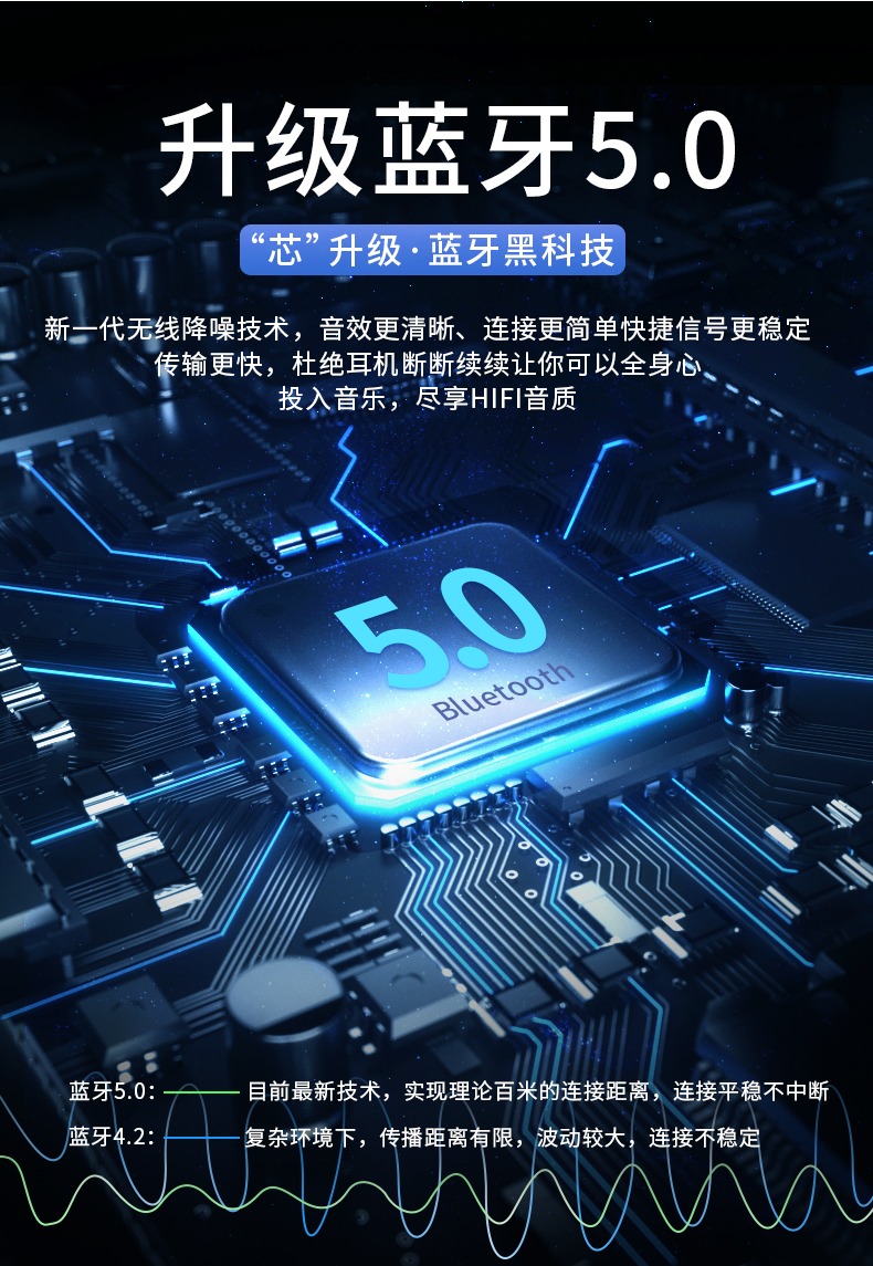 蓝牙耳机5.0,自动开机配对,一键切换上下曲,调节音量,唤醒Siri,8D立体环绕音效,多功能LED充电舱,既可为手机应急充电,还可当手机支架看电影