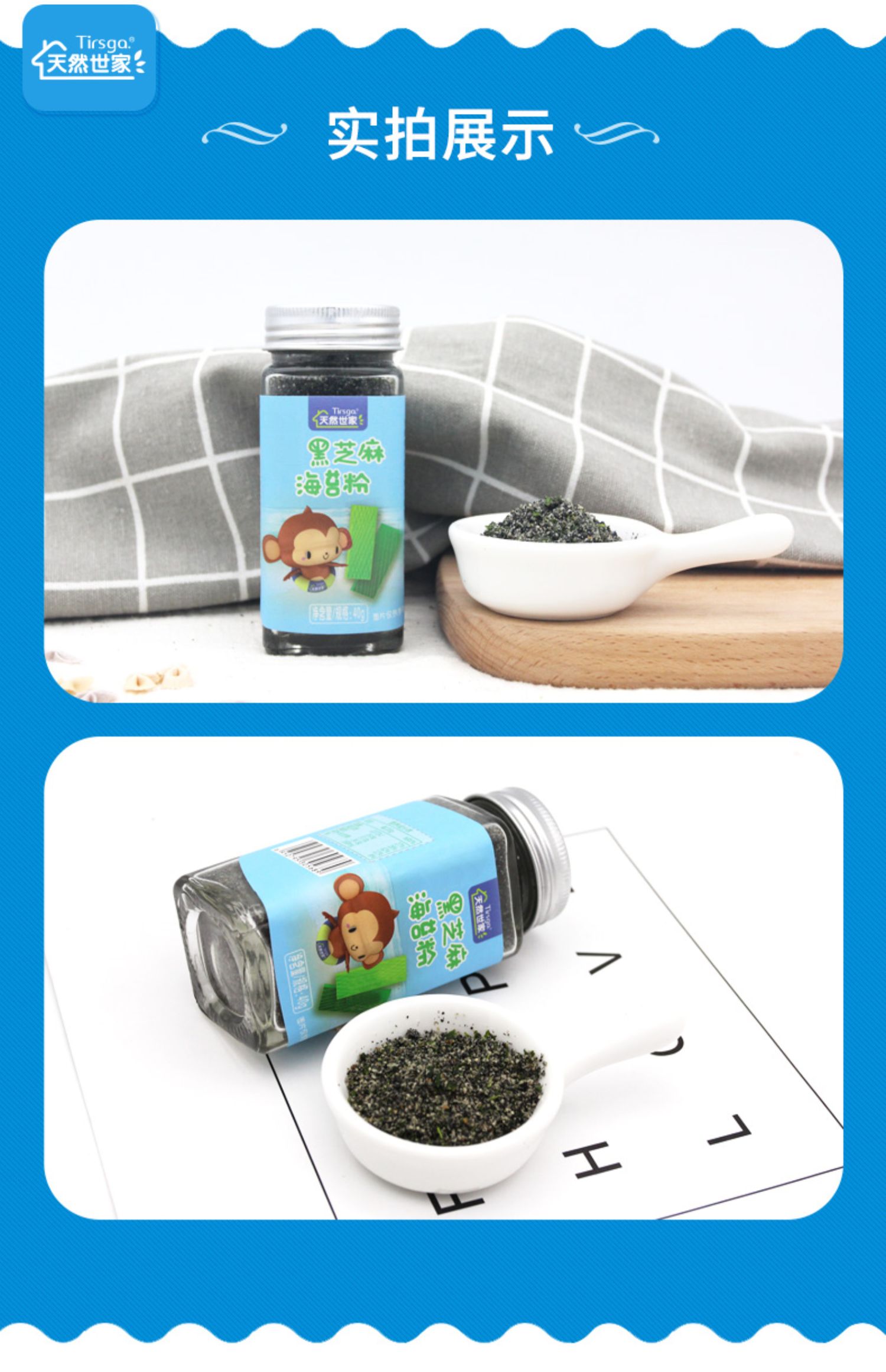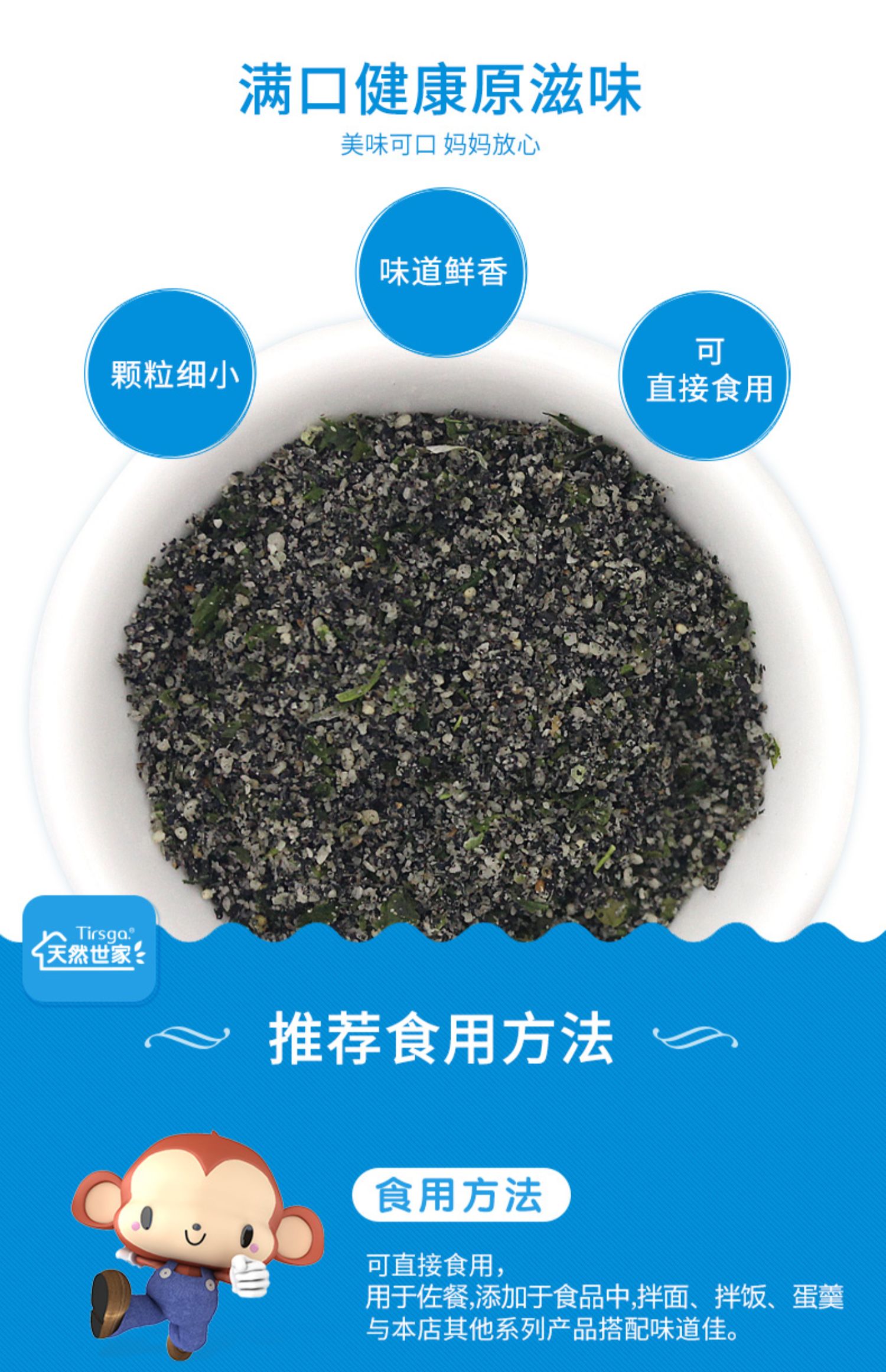适合宝宝口味的调味盐~精选特级黑芝麻海苔粉,润燥生津~咸味低,有味道~营养好味道,宝宝吃饭香~多种口味,多种营养~