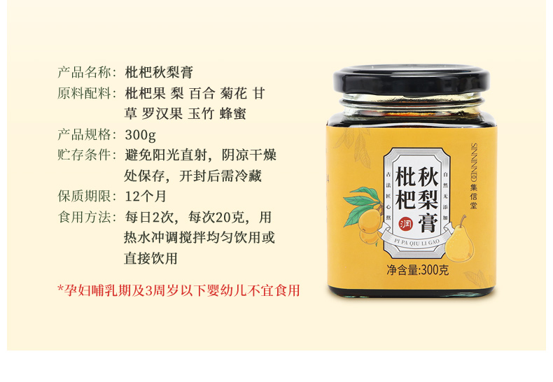 【第2件0.1元,第3件0元】集信堂手工枇杷雪梨膏,古法熬制,膏体醇厚浓稠,真正无添加,滋润喉咙,清爽甘甜,秋冬太干燥,喝这个好!!