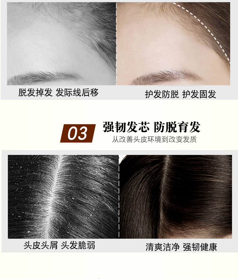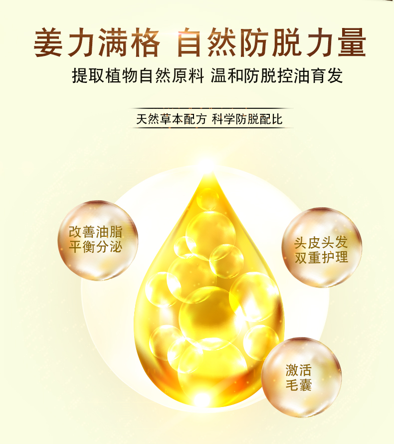 内含生姜精华,防脱育发养发,去屑止痒,清洁头皮,天然草本配方,科学防脱配比,多重功效,已经过质检报告!呵护家人秀发健康~
