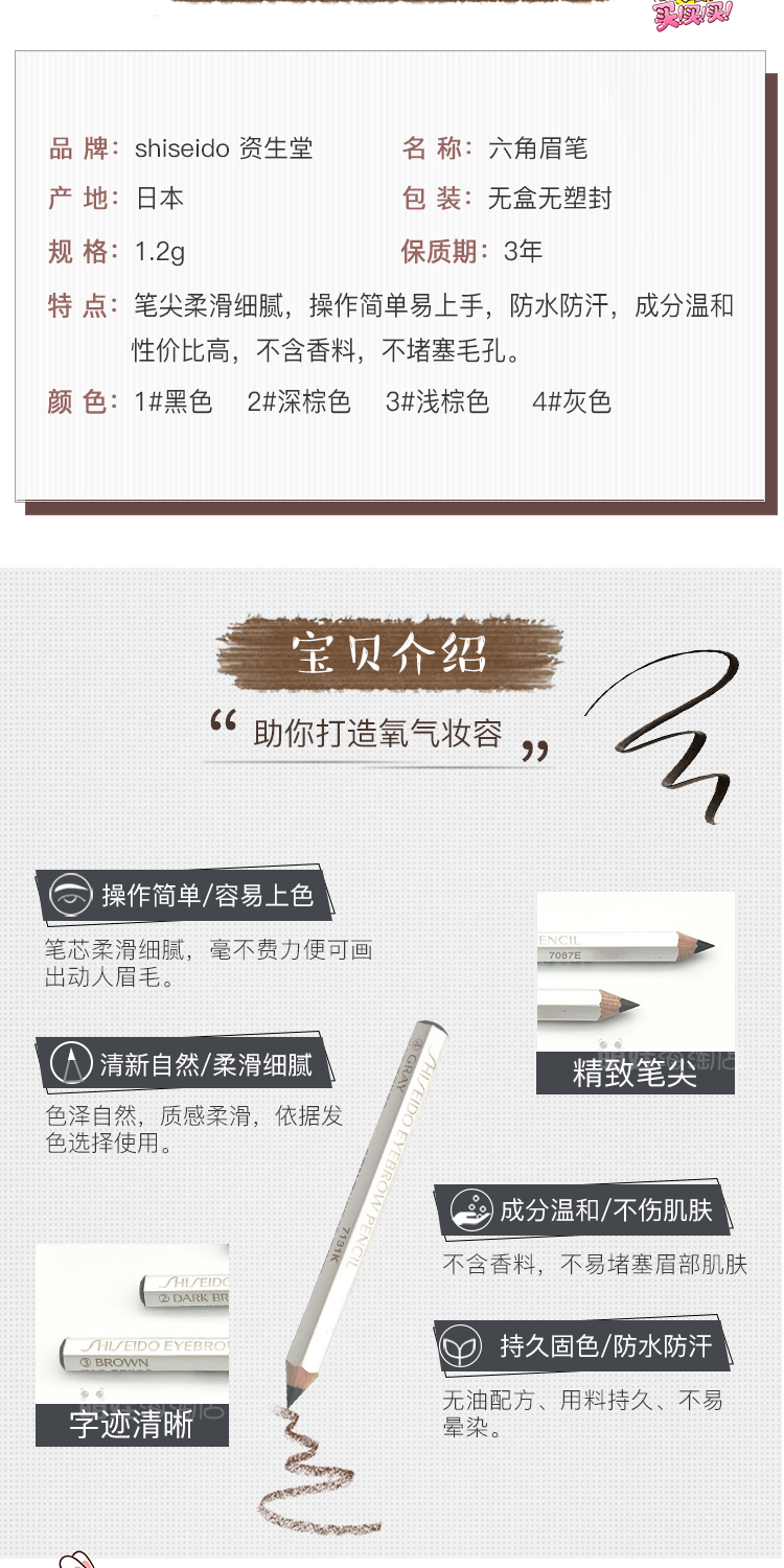 日本Shiseido/资生堂,还送眉笔,卷笔刀,眉刷!易上色,防水防,持久定妆不晕染,妆容立体感强,颜色搭配自然,你值得拥有。【赠送运费险】