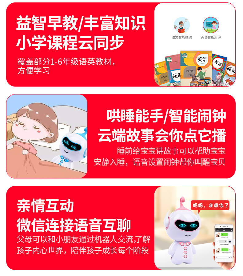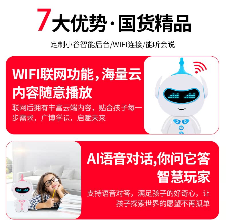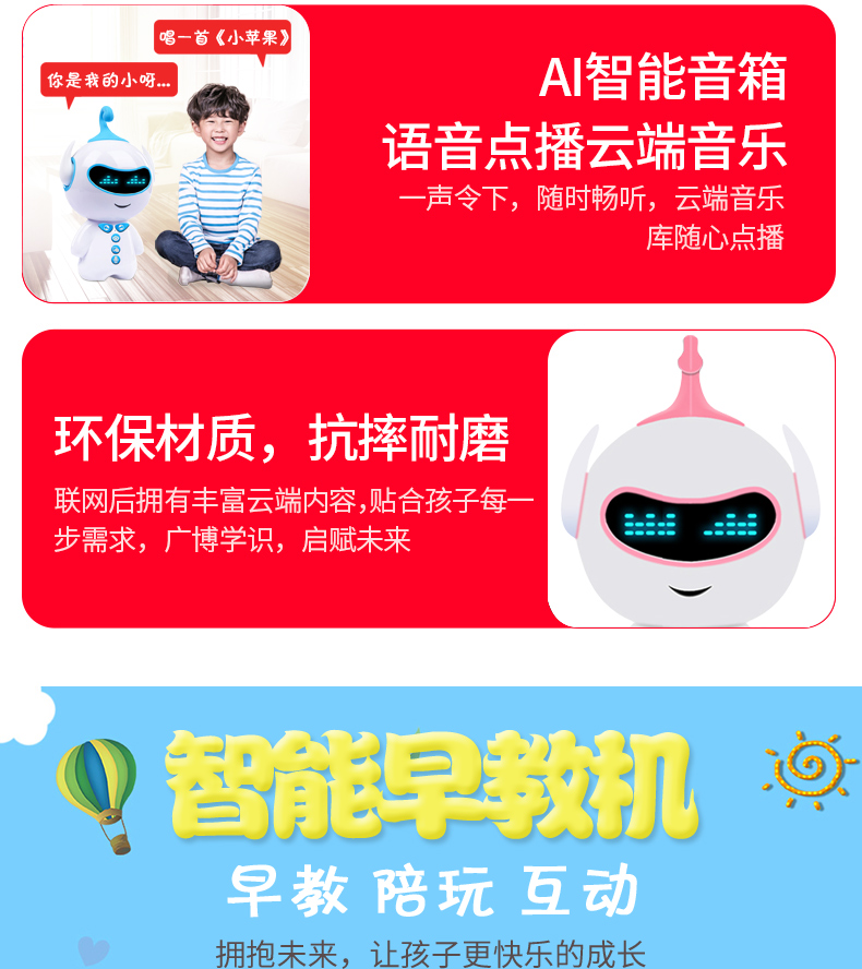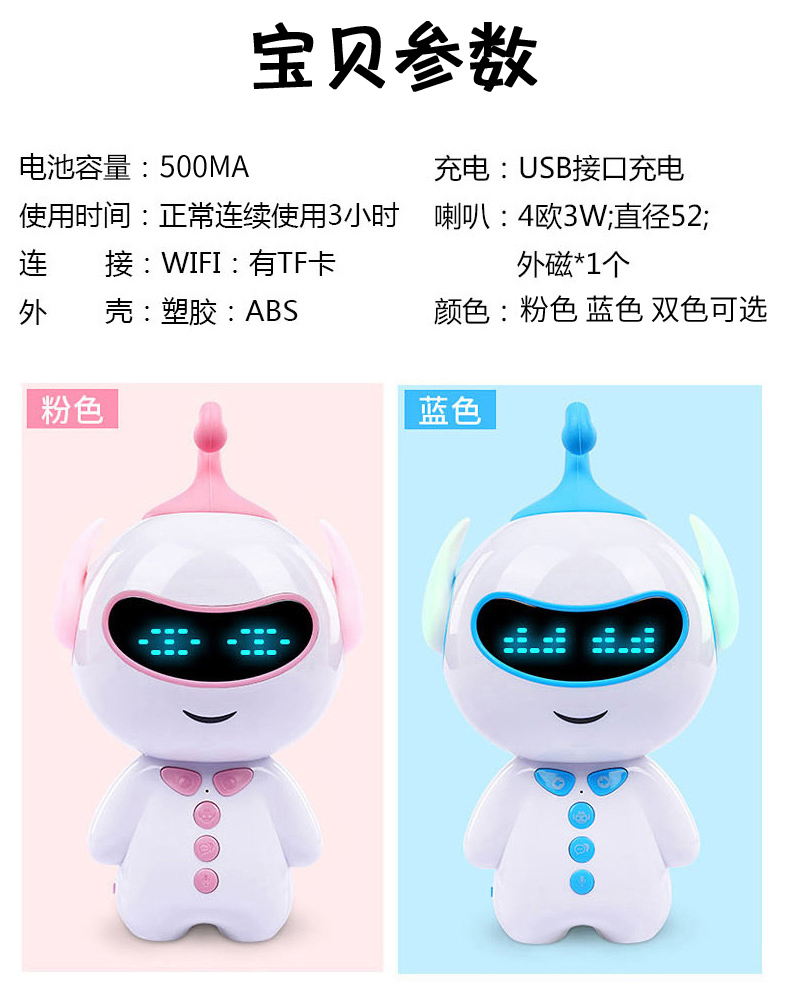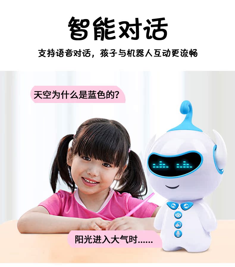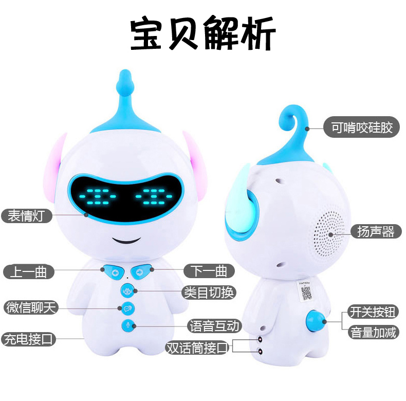 语音问答,海量资源,wifi联网,微信语音聊天,人机互动,开拓新世界,学习新知识,智能绿色对话!让孩子和机器人在互动中快乐学习健康成长。【赠运费险】