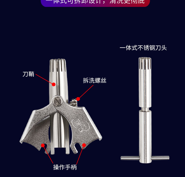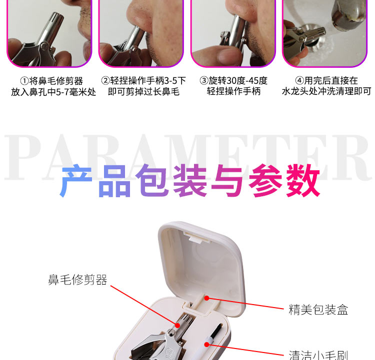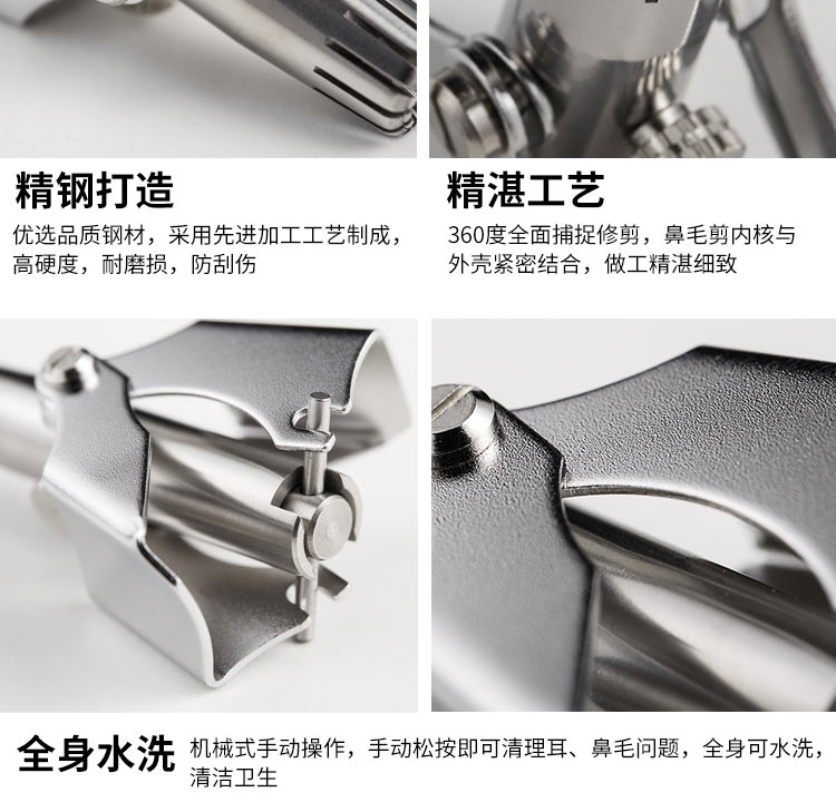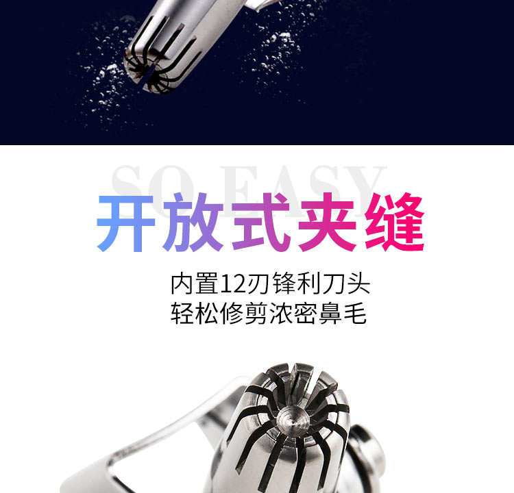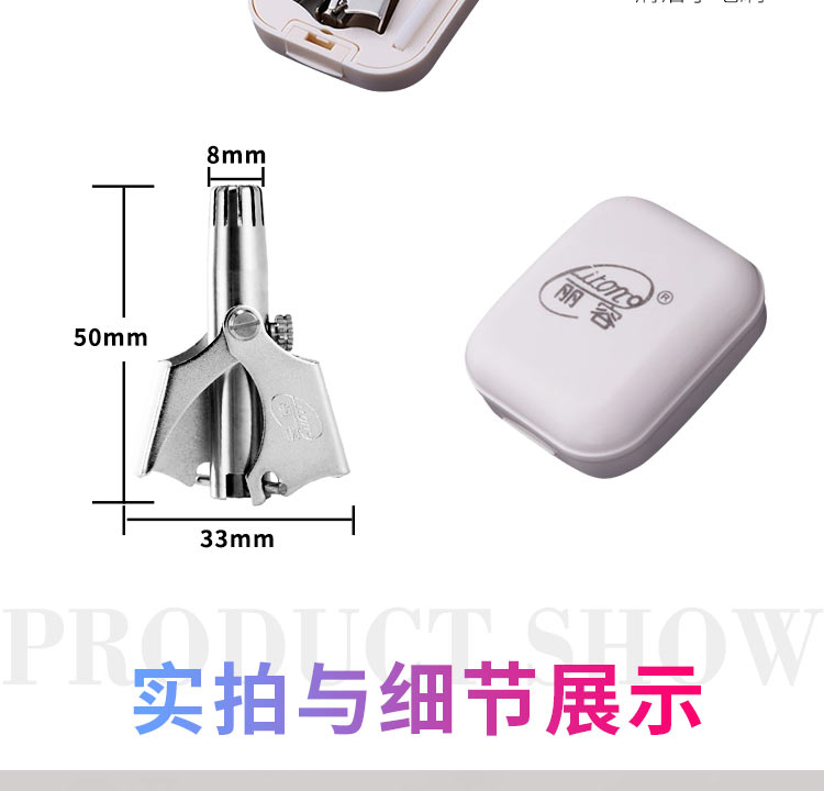 丽容鼻毛修剪器,选用优质钢材,高硬度,耐磨损,防刮伤,内置12刃刀锋刀头,轻松修剪浓密鼻毛,全身水洗,清洁卫生
