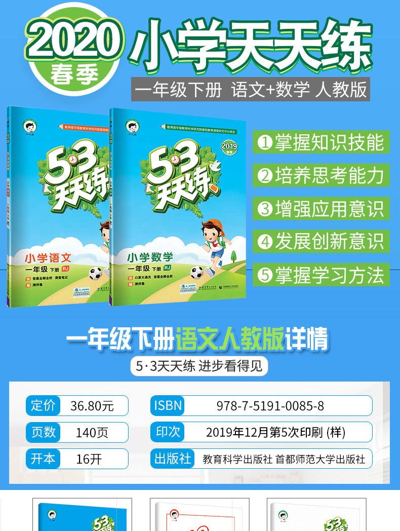 2020春53天天练一年级下册,语文数学人教部编版统编,5.3五三5+3小学生1下每日一课一练课时课堂作业练习,测试书同步训练试卷寒假昨业。
