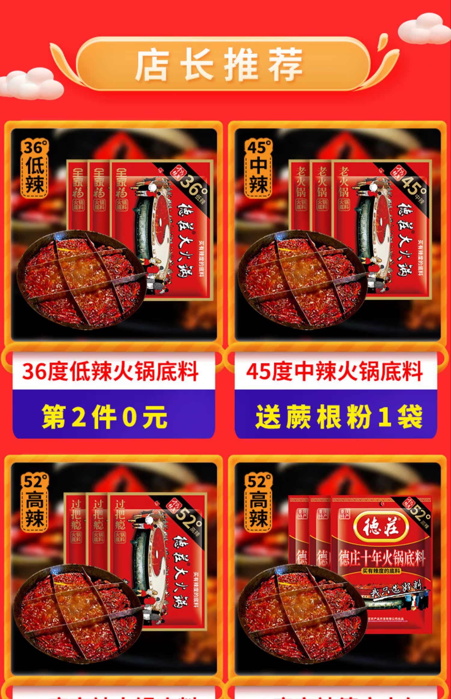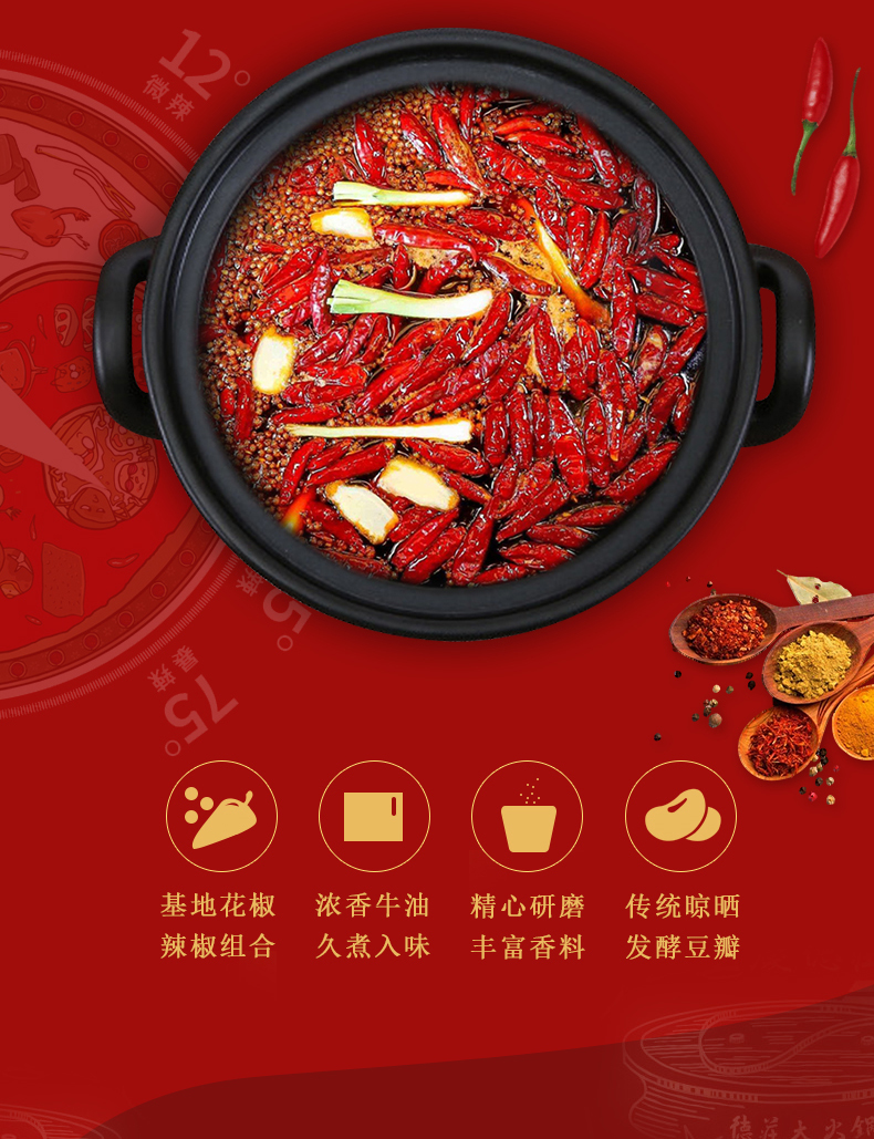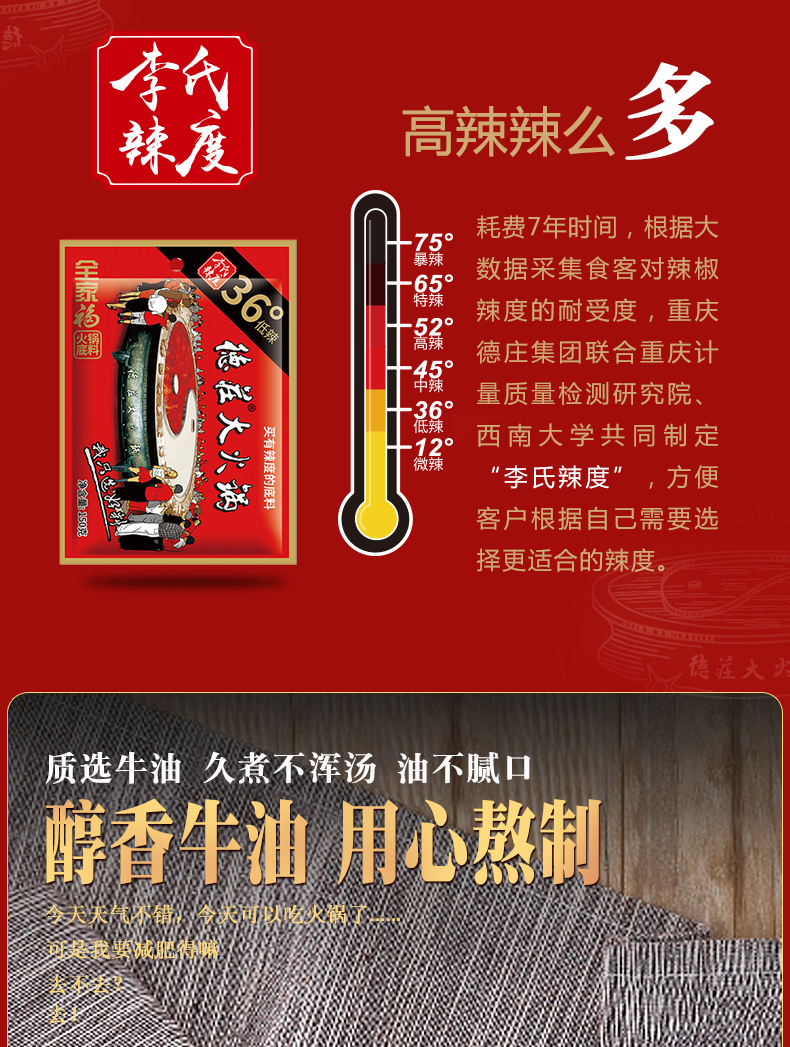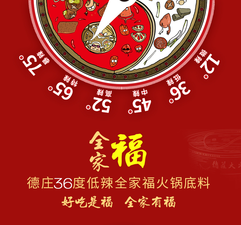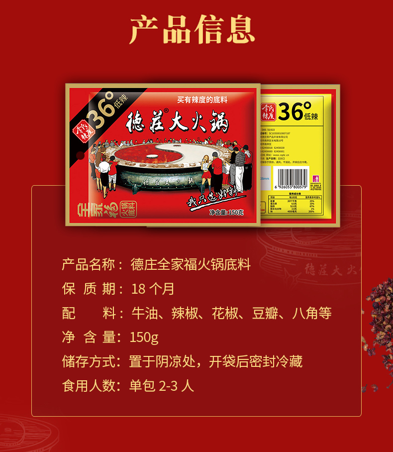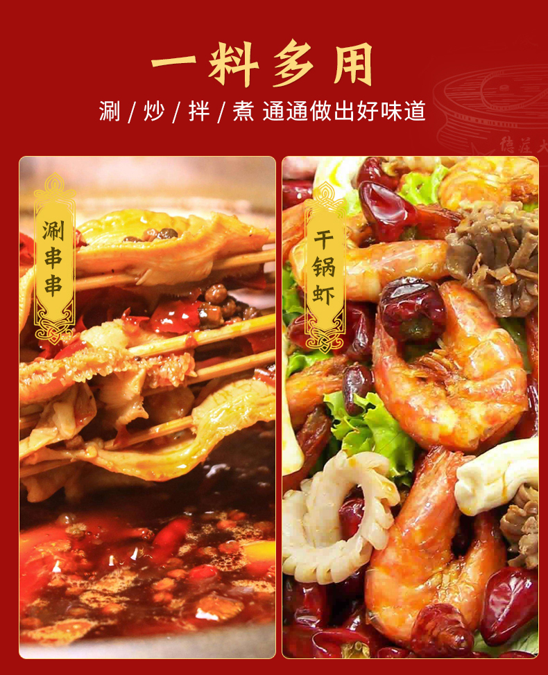 两份15.8元!吃火锅选重庆德庄火锅底料!20年专注火锅!线下900余连锁店!精选重庆红辣椒,色泽鲜红,辣的劲爆,自己在家就能涮火锅,煮麻辣烫!吃的贼爽!