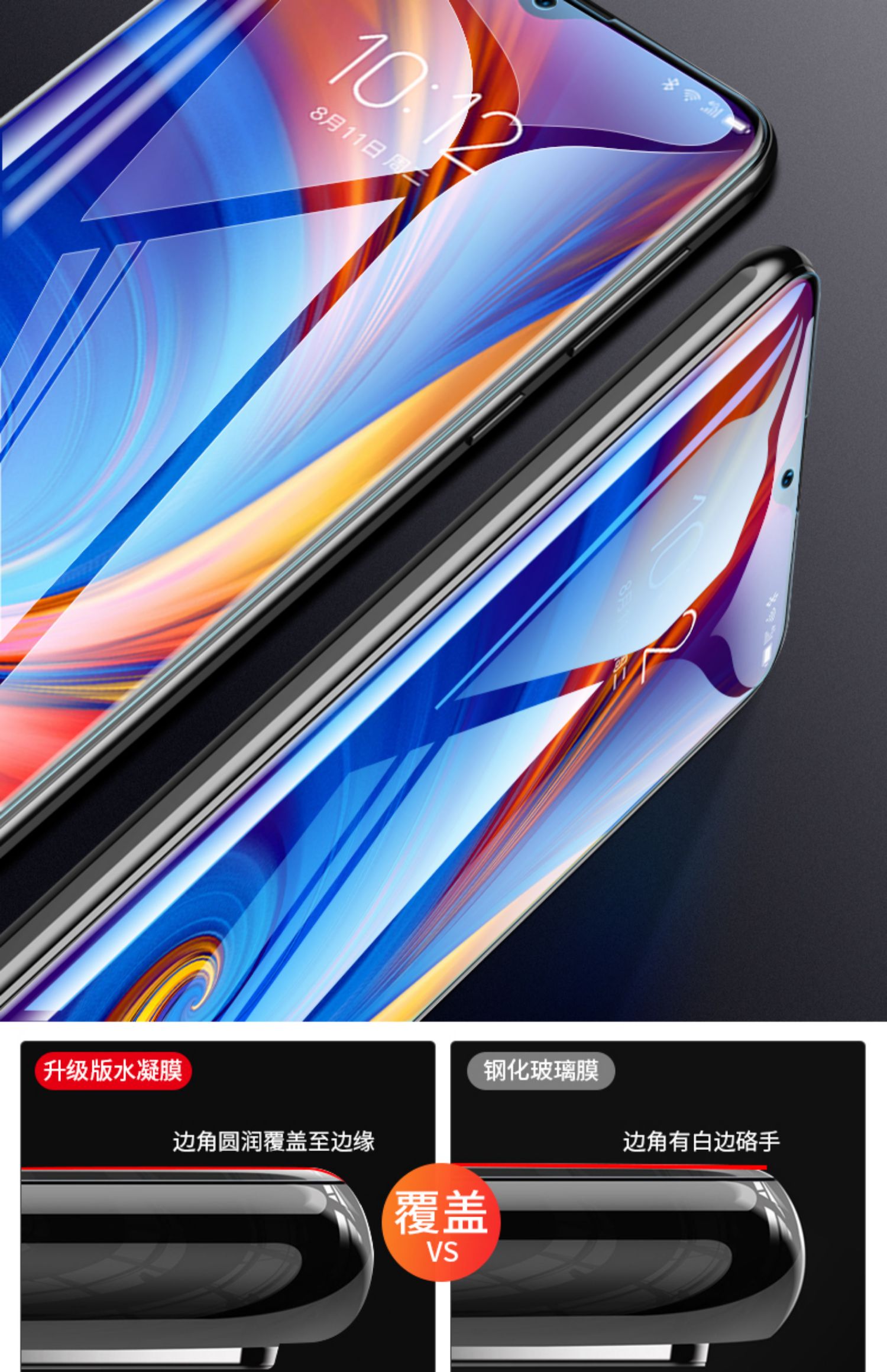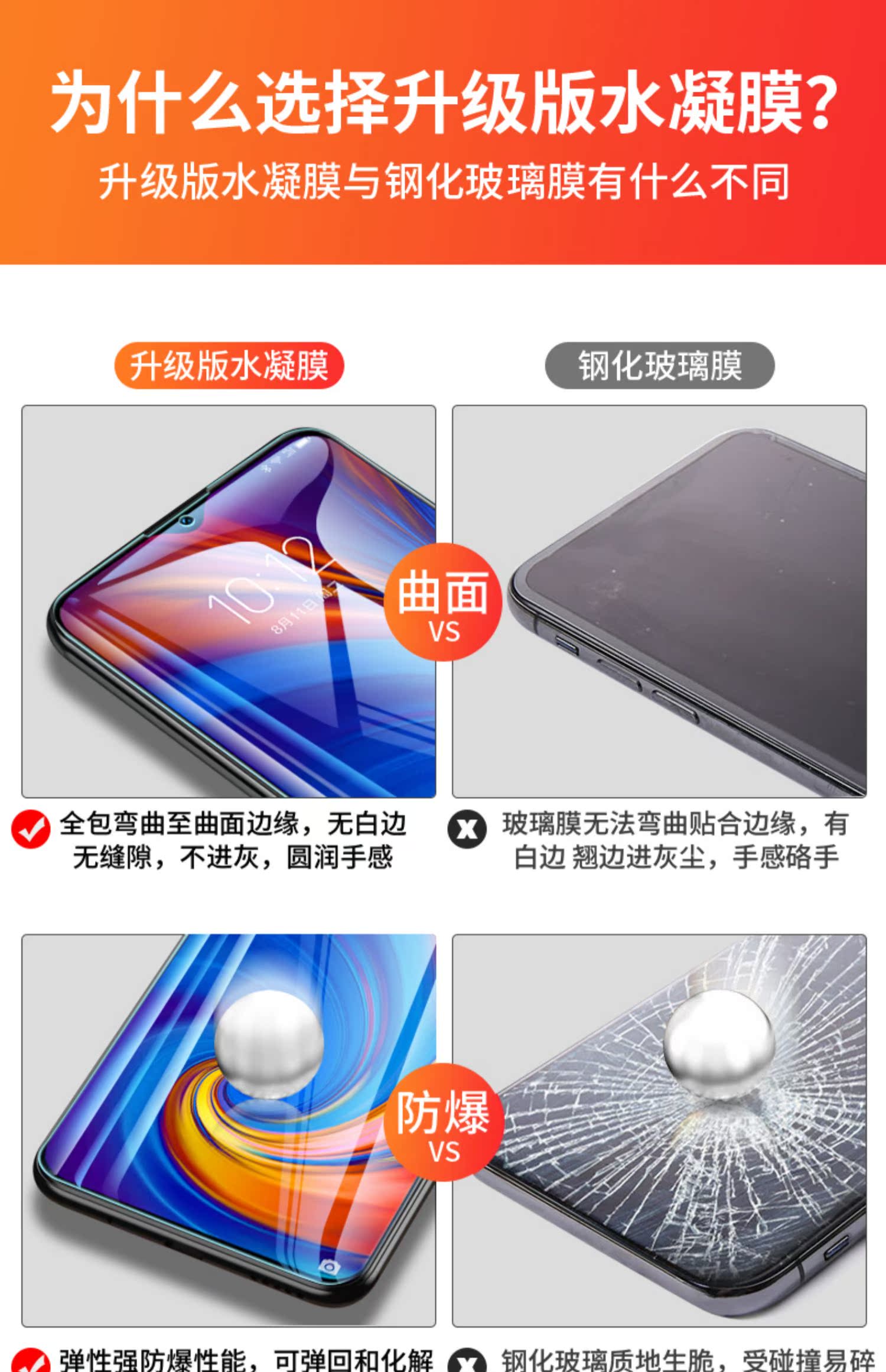 【2片装】送神器+后膜!真9D水凝膜。全屏覆盖,告别碎屏,采用纳米融合技术,24小时内划痕自动修复完整!抗蓝光,保护眼睛,无白边,无气泡,无需喷水!还原裸机手感!!