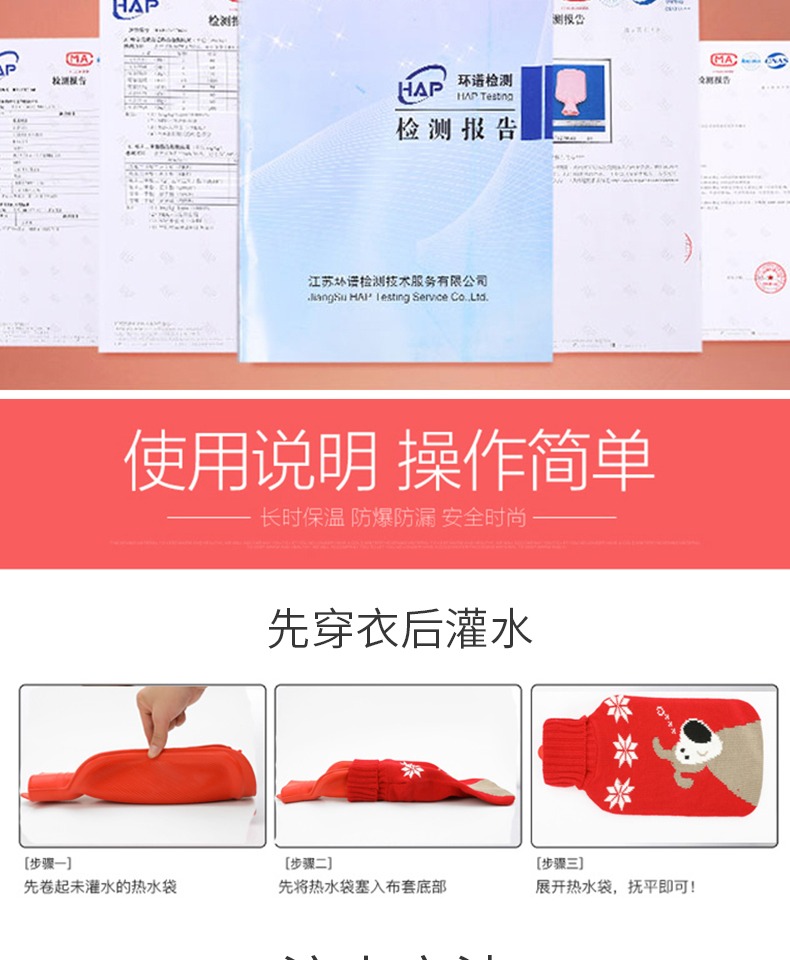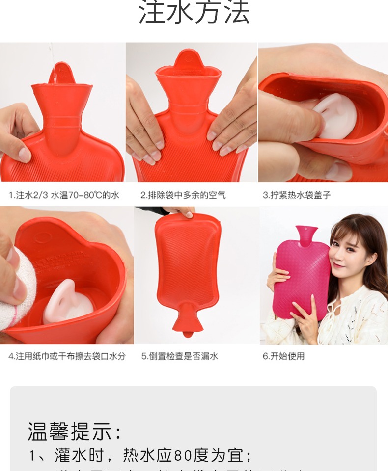 质量无忧~【送毛绒套】经典橡胶热水袋,将安全进行到底!加厚防烫,防爆防漏,柔软舒适,外包毛绒套,热量持久,均匀缓慢散热,抱在怀里暖暖的,