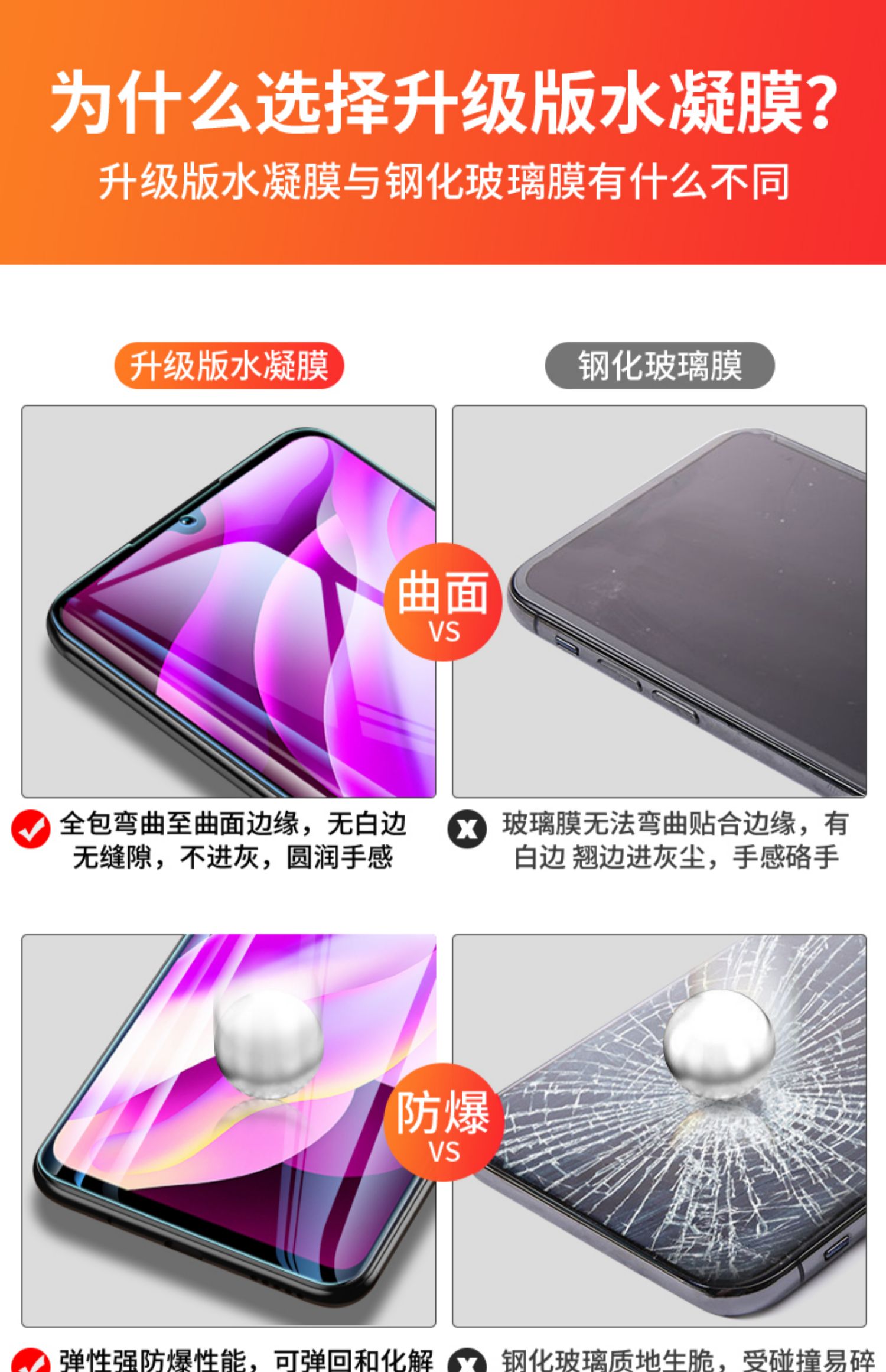 【2片装】送神器+后膜!真9D水凝膜。全屏覆盖,告别碎屏,采用纳米融合技术,24小时内划痕自动修复完整!抗蓝光,保护眼睛,无白边,无气泡,无需喷水!还原裸机手感!!