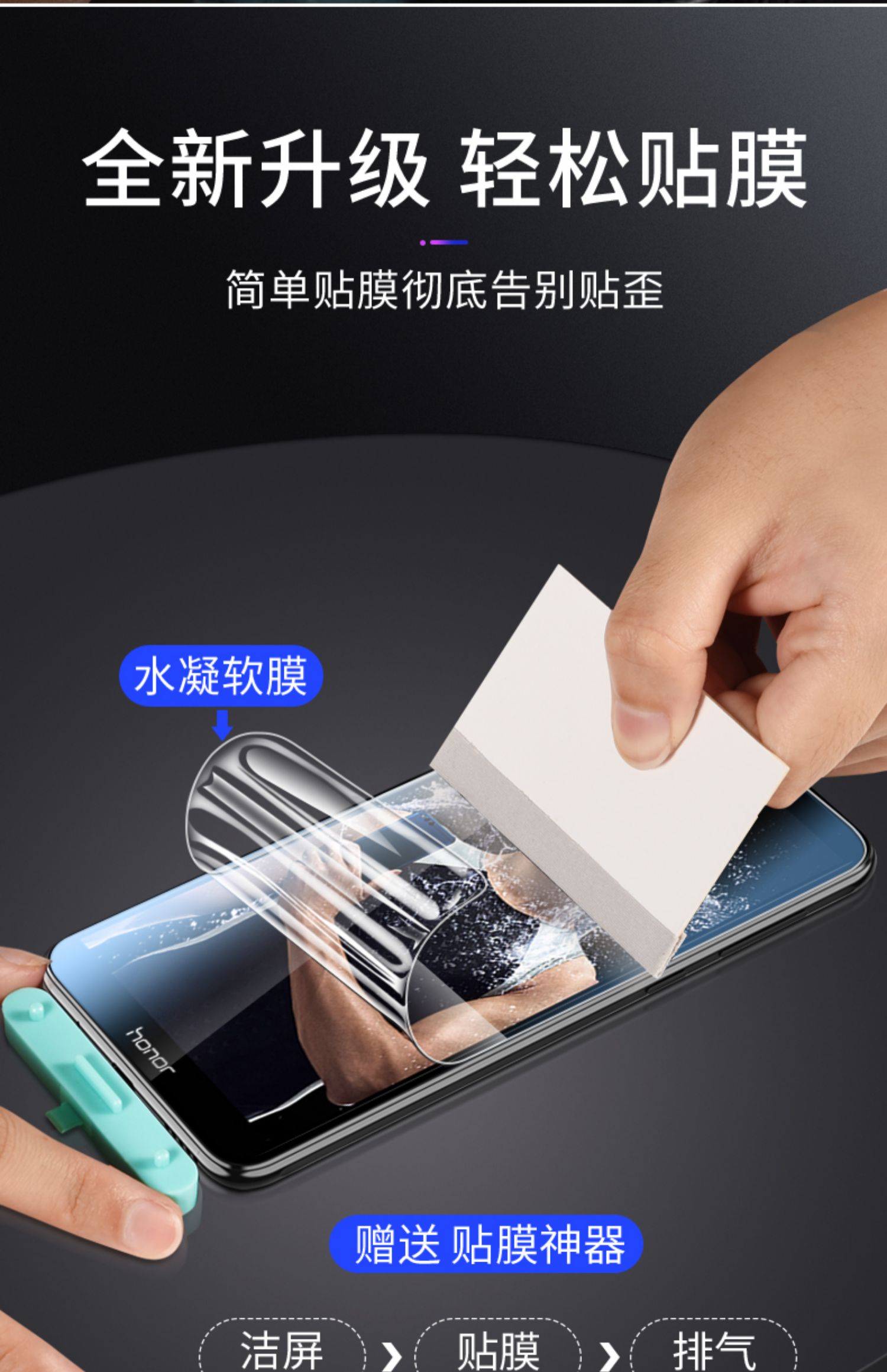 【2片装】送神器+后膜!真9D水凝膜。全屏覆盖,告别碎屏,采用纳米融合技术,24小时内划痕自动修复完整!抗蓝光,保护眼睛,无白边,无气泡,无需喷水!还原裸机手感!!
