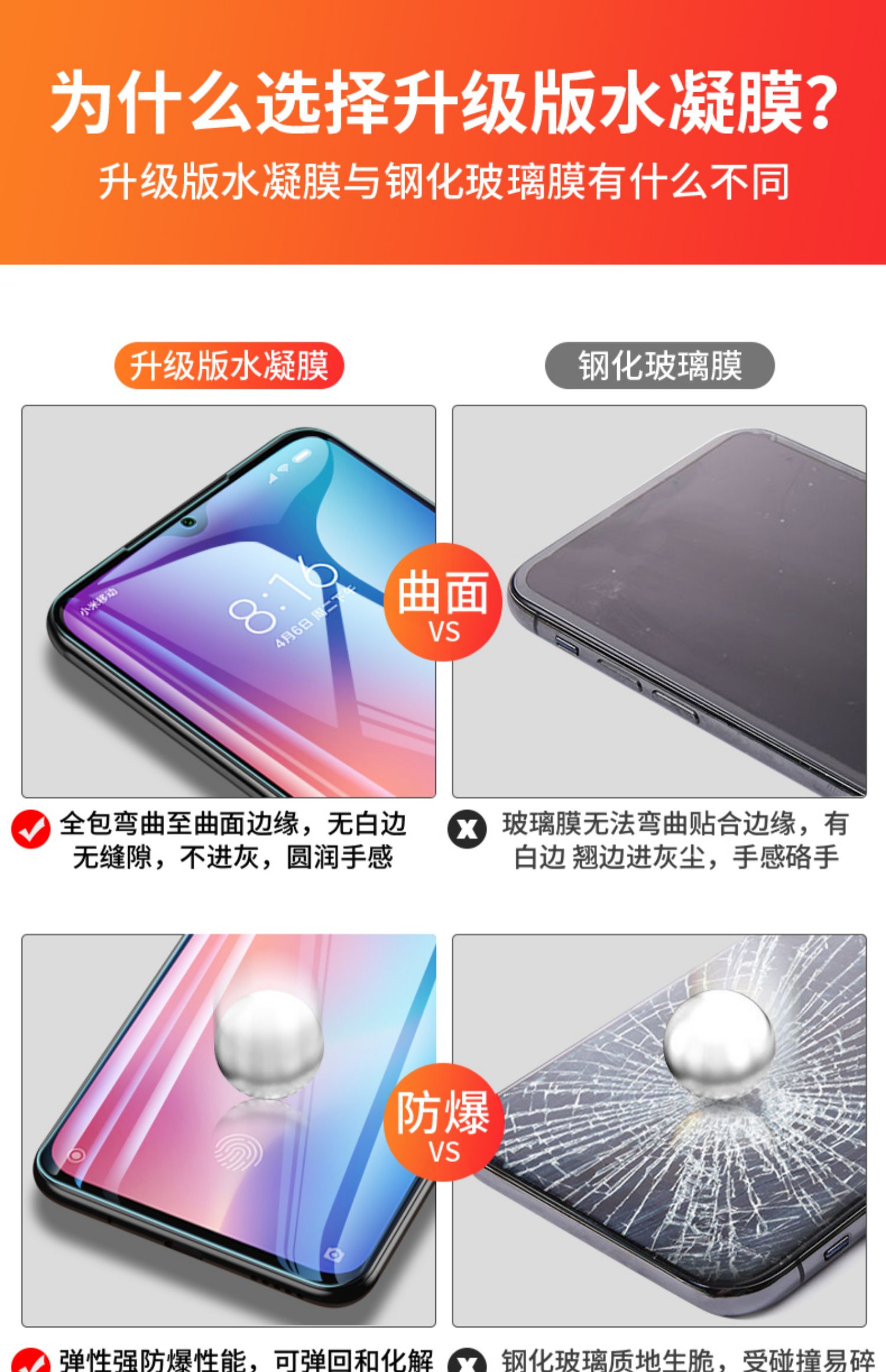 【2片装】送神器+后膜!真9D水凝膜。全屏覆盖,告别碎屏,采用纳米融合技术,24小时内划痕自动修复完整!抗蓝光,保护眼睛,无白边,无气泡,无需喷水!还原裸机手感!!