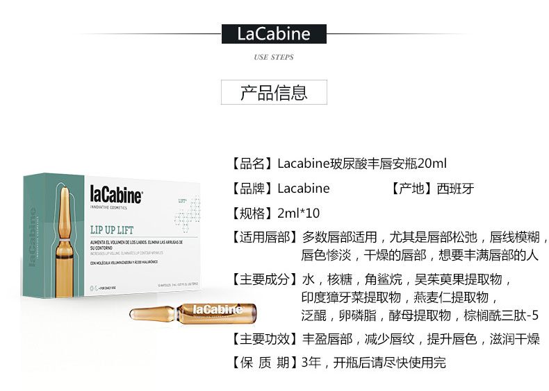 【第2件0元】西班牙原装进口,唇部精华10支/盒,涂沫式玻尿酸,丰满提拉,打造立体娇唇,淡化唇纹,滋养红润,抗氧化,减缓唇部老化【赠运费险】