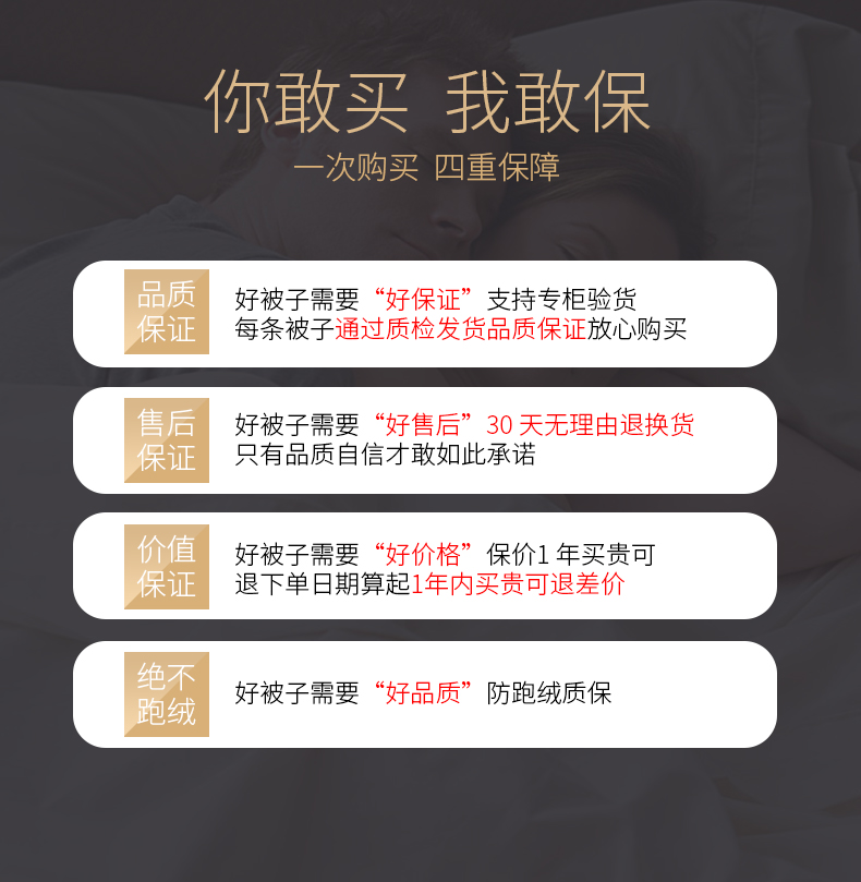 哇哦,是睡在云朵里的感觉128起就能实现,优质羽丝绒填充,加厚高密度磨毛面料,无异味不钻绒不起球不褪色,冬天的被子是舒服温暖不压身,满满的安全感让你熟睡一整晚【赠运费险】