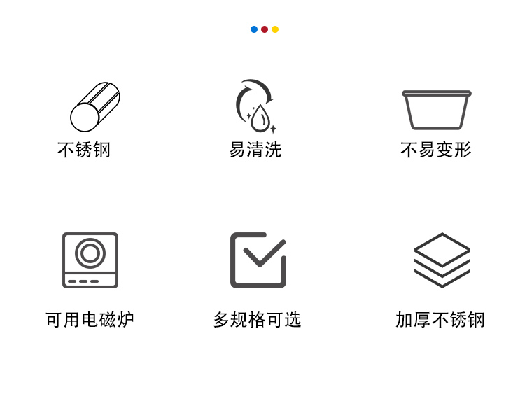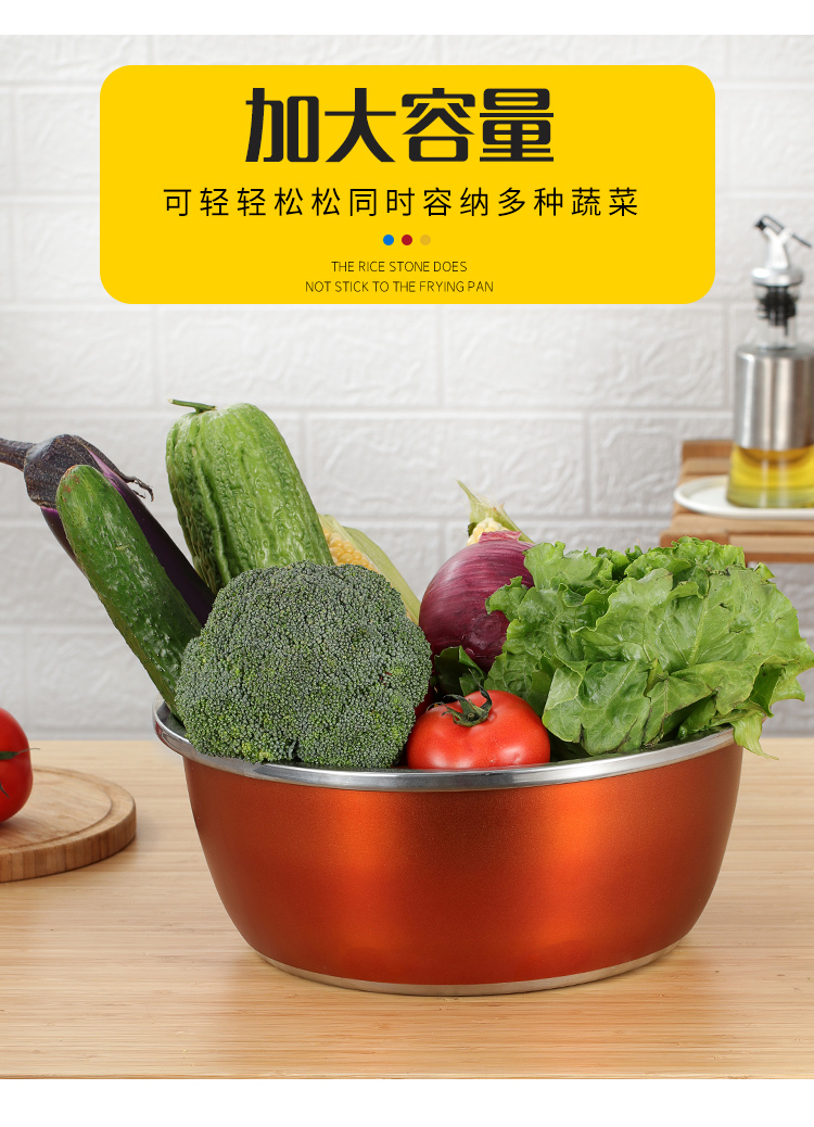 精致德式工艺,多种规格选择,拉丝抛光,不易划花,加厚加深还镜亮,品质稳定,时尚耐用,洗菜,调料,和面洗水果统统都可以搞定。