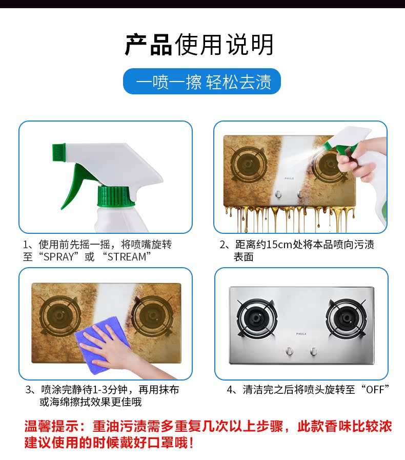 强力去油去污,瓦解顽固污渍,洁净如新,温和不伤手,居家清洁好帮手,让厨房清洁更省心省力,效果好到不多说,强烈推荐!