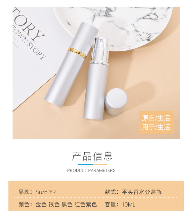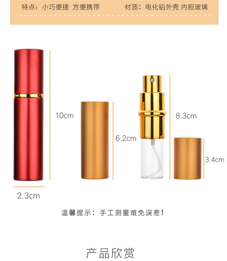 【正品保证】SurbYR香水小样分装瓶,玻璃喷瓶铝制瓶身,不易掉色,小巧多色,口红大小,携带便捷,让分装更加简单!