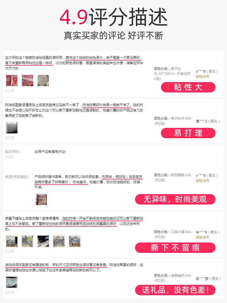 【30*300cm!防油防潮耐高温!多尺寸】厨房防水防油贴膜,加厚强力自粘,安全环保材质,权威质检报告无甲醛!防潮/防霉/防油,易贴易撕,易清洁耐高温,适用于浴室厨房卧室等多种场景,撕下不留痕~