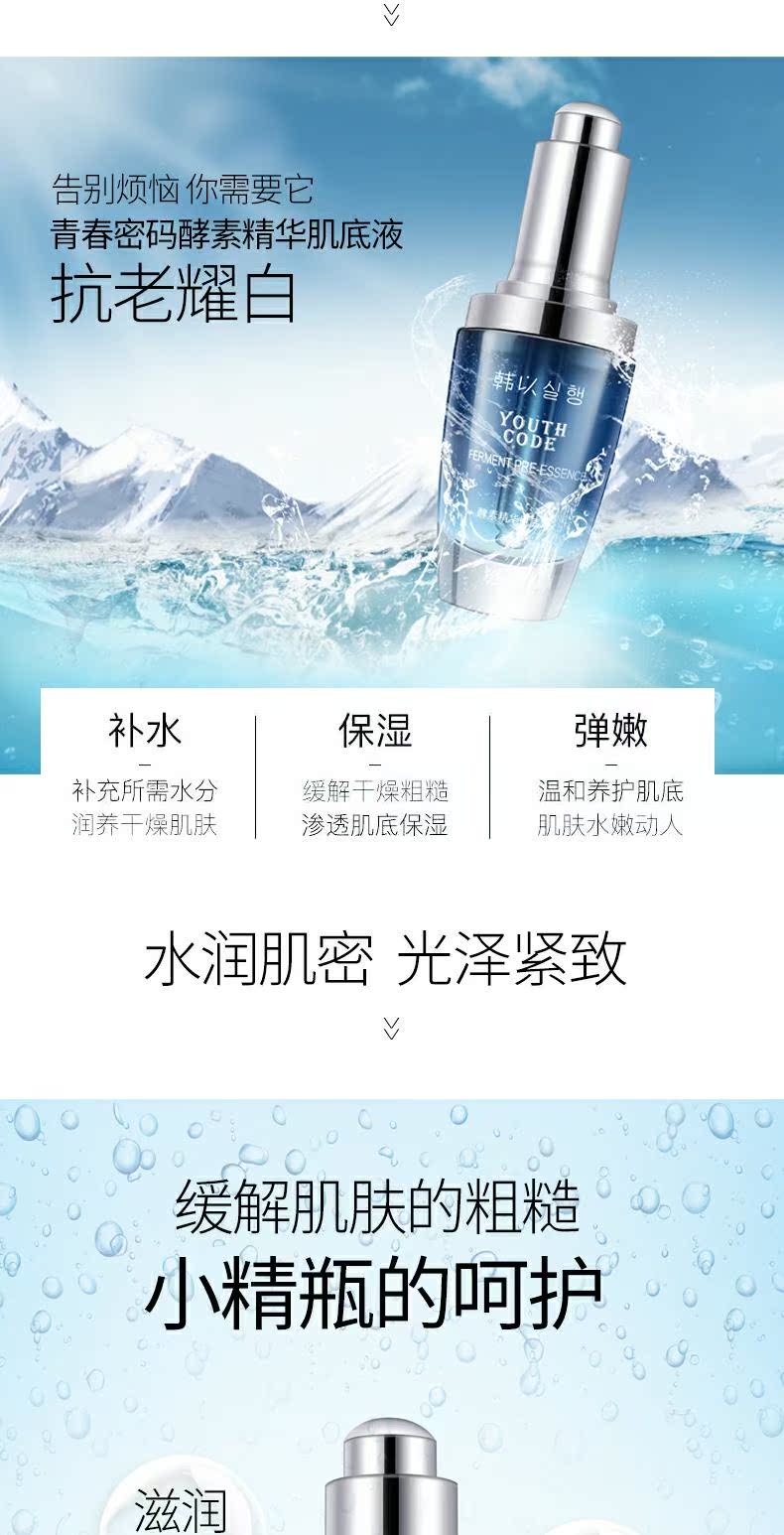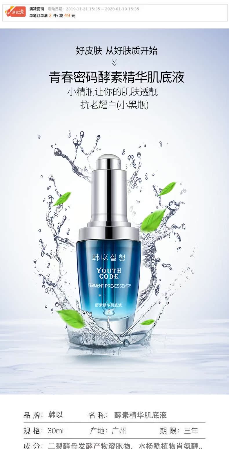 青春密码酵素精华肌底液,小精瓶让你的肌肤透靓,抗老耀白,缓解肤色不均,控油滋润肌肤。