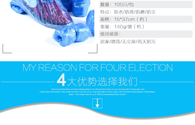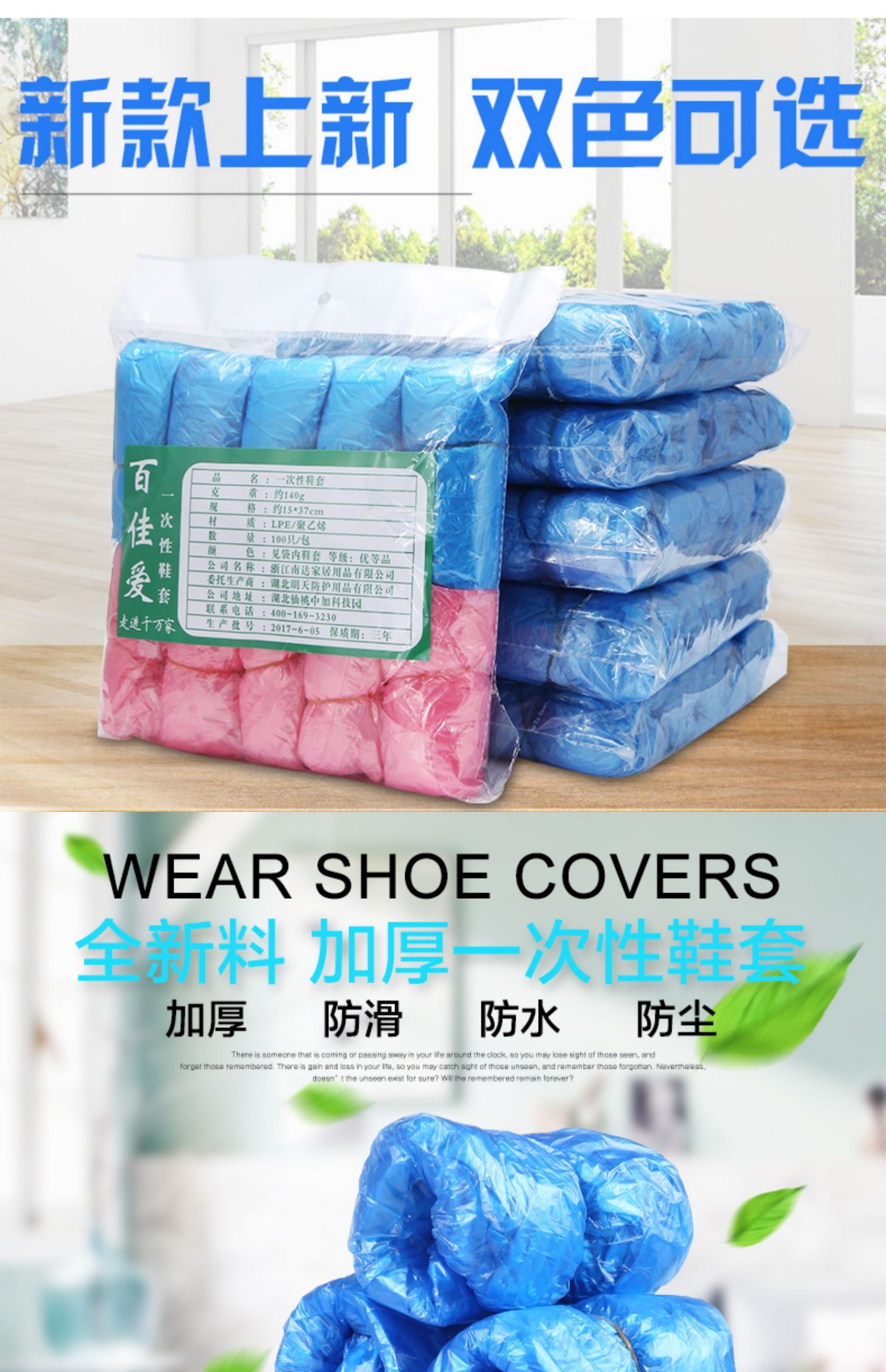 【100只装】环保加厚塑料,雨天防水防尘,耐磨不易破,承重强不漏水,保持室内干净卫生,弹性松紧口,穿着舒适自然,均码通用,多色可选防静电,有了它避免不想脱鞋的尴尬。速度抢!