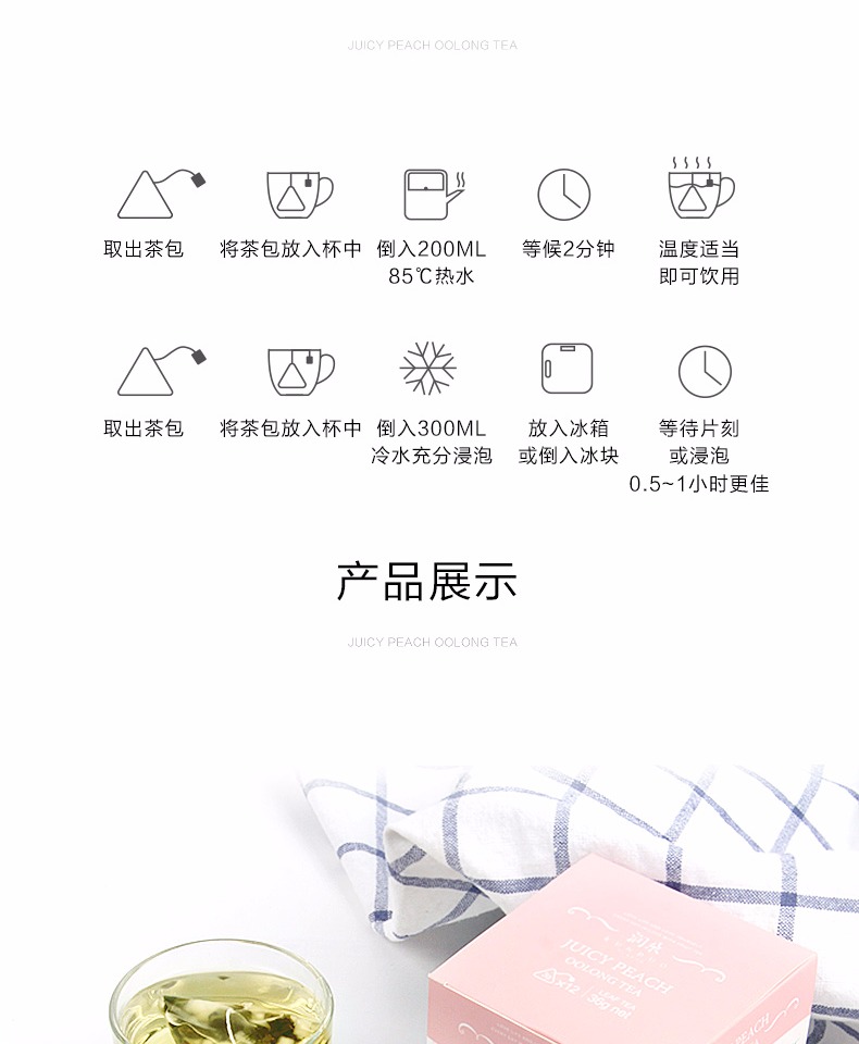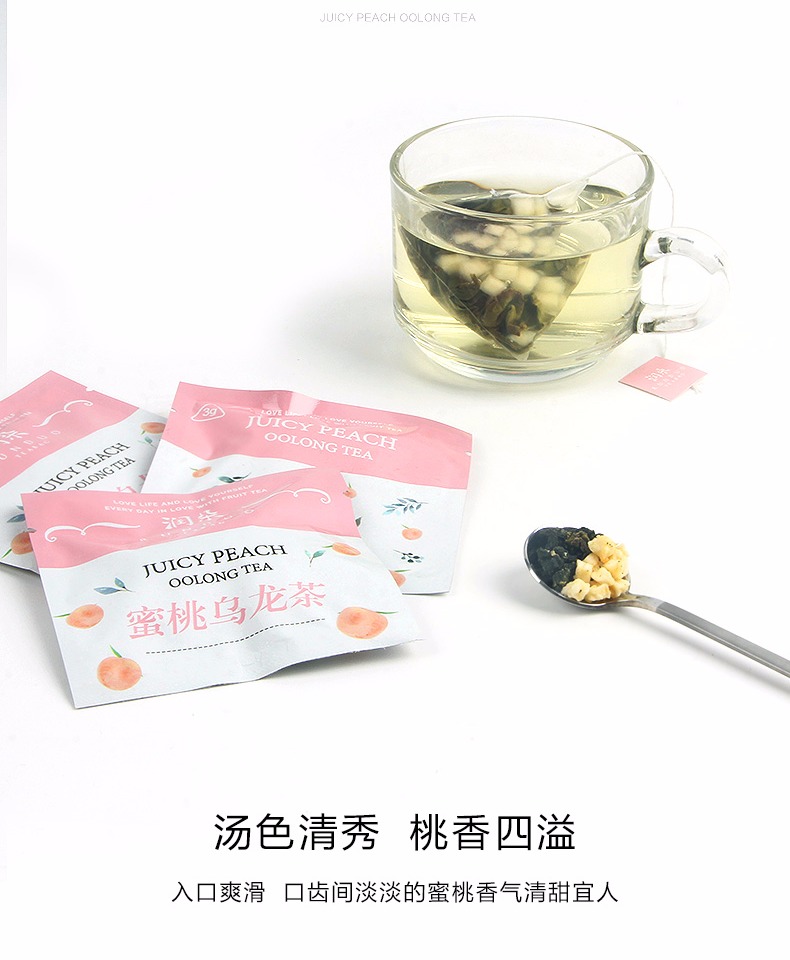 超划算啦!!蜜桃与乌龙茶的邂逅,造就一道新鲜饮品!预防蛀牙,抗肿瘤、预防老化,双倍排毒功效,新鲜水果调制,丰富的VC,汤香清秀,入口爽滑,三角茶包冲泡,方便快捷,健康又养生!