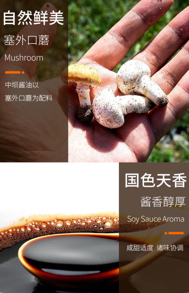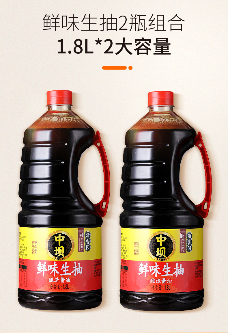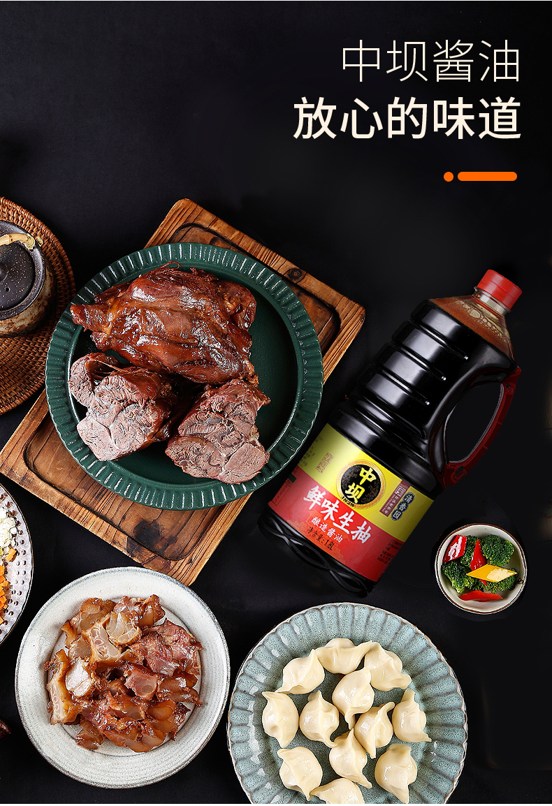 在家也能做大厨,好调料就是TA!中坝鲜味生抽酿造酱油,精选非转基因脱脂大豆,古法酿造,更加浓郁鲜香~烧蘸两用,提味增鲜,迅速入味~限时2瓶只要19.9,轻松烹饪美味佳肴!