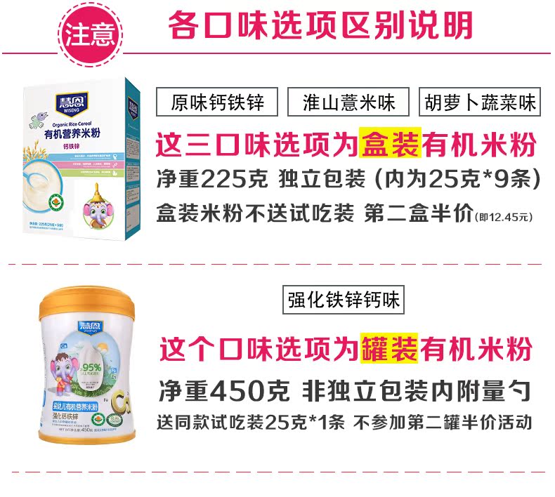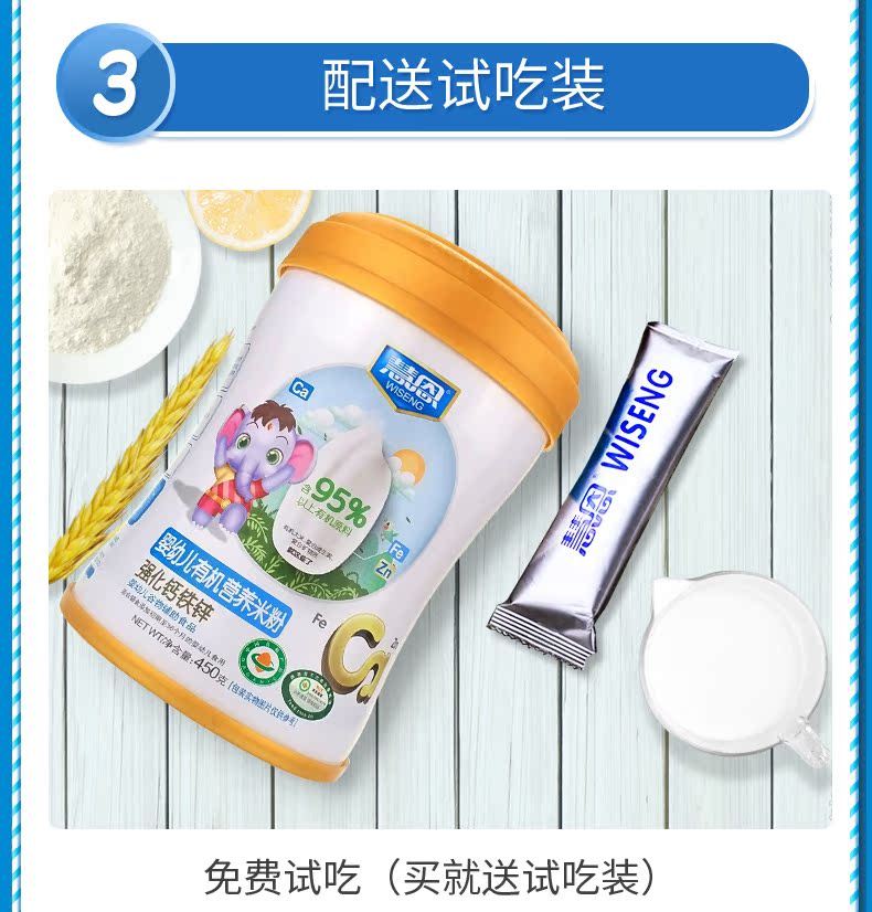 【送试吃装】,采用有机大米制作,比市面上普通米粉更安全,更健康!不分段,4个月以上婴幼儿可以吃,营养对比同类高3.5%,片状状米粉,香糯容易冲泡,三种口味可选,日期新鲜【赠运费险】