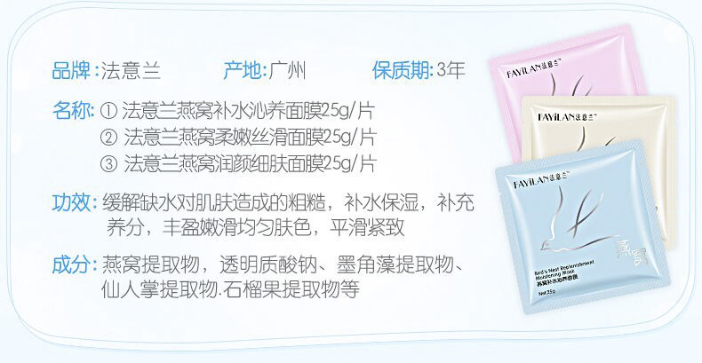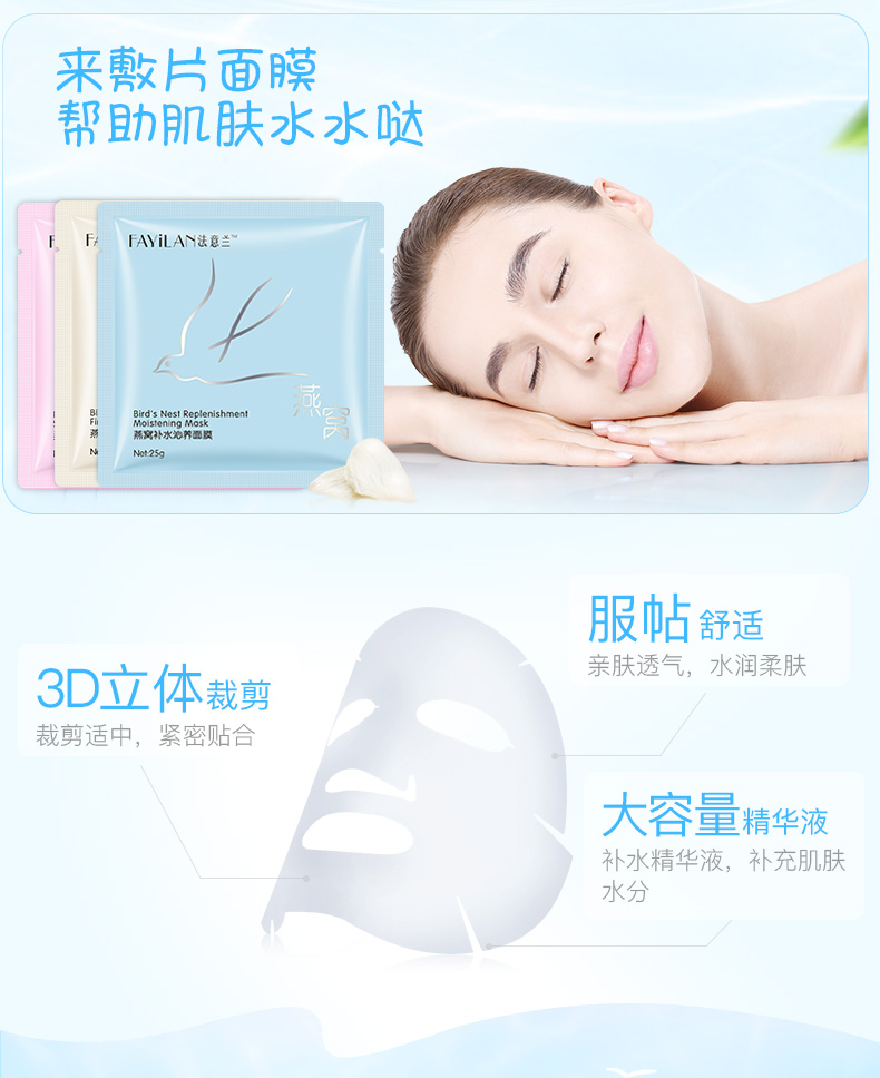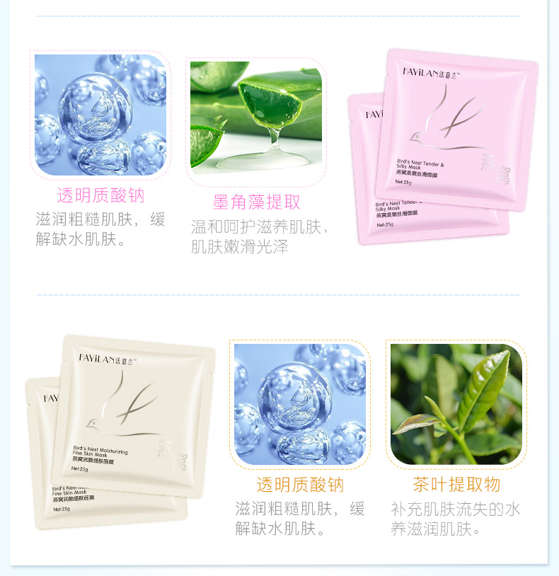 三重不同功效燕窝面膜,补水、柔嫩、丝滑、润颜,敷片面膜让肌肤水水哒,嫩嫩哒。免费试用,送素颜霜或护手霜。【赠运费险】