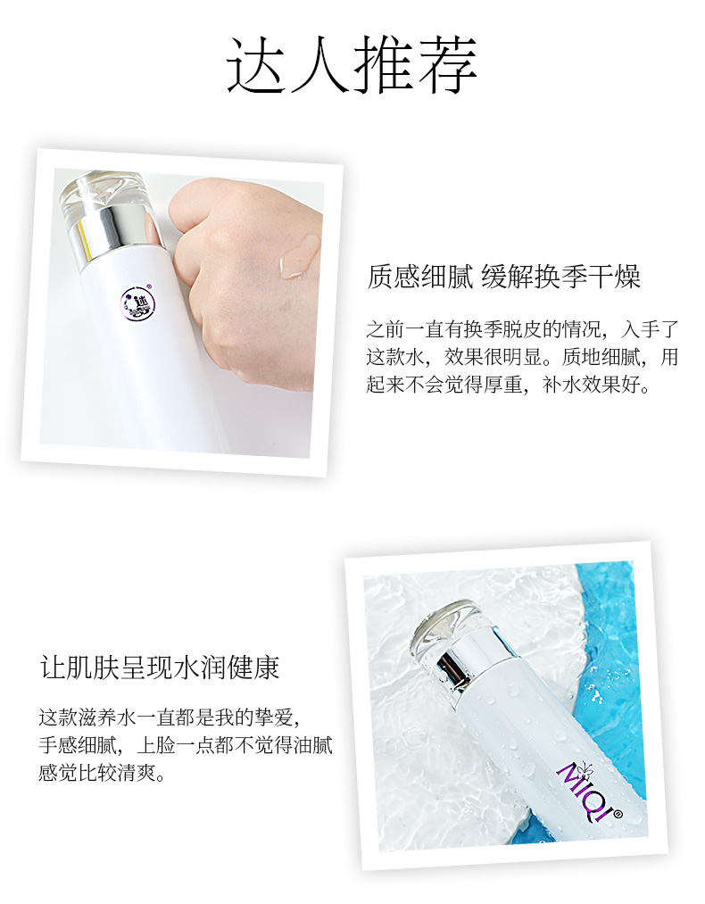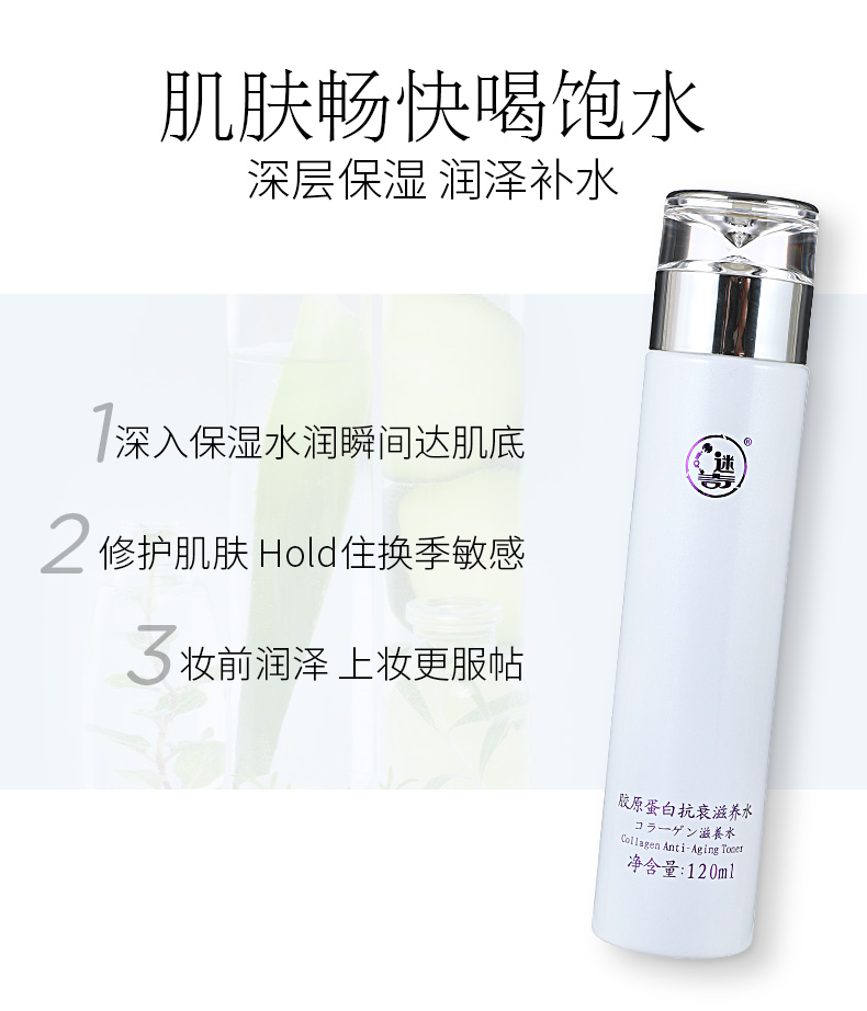 迷奇胶原蛋白抗衰滋养水,清爽舒适,深层补水,安抚肌肤,细致毛孔,水润亮泽,滋润肌肤,全五分好评的爽肤水,真正好用,适合任何肤质