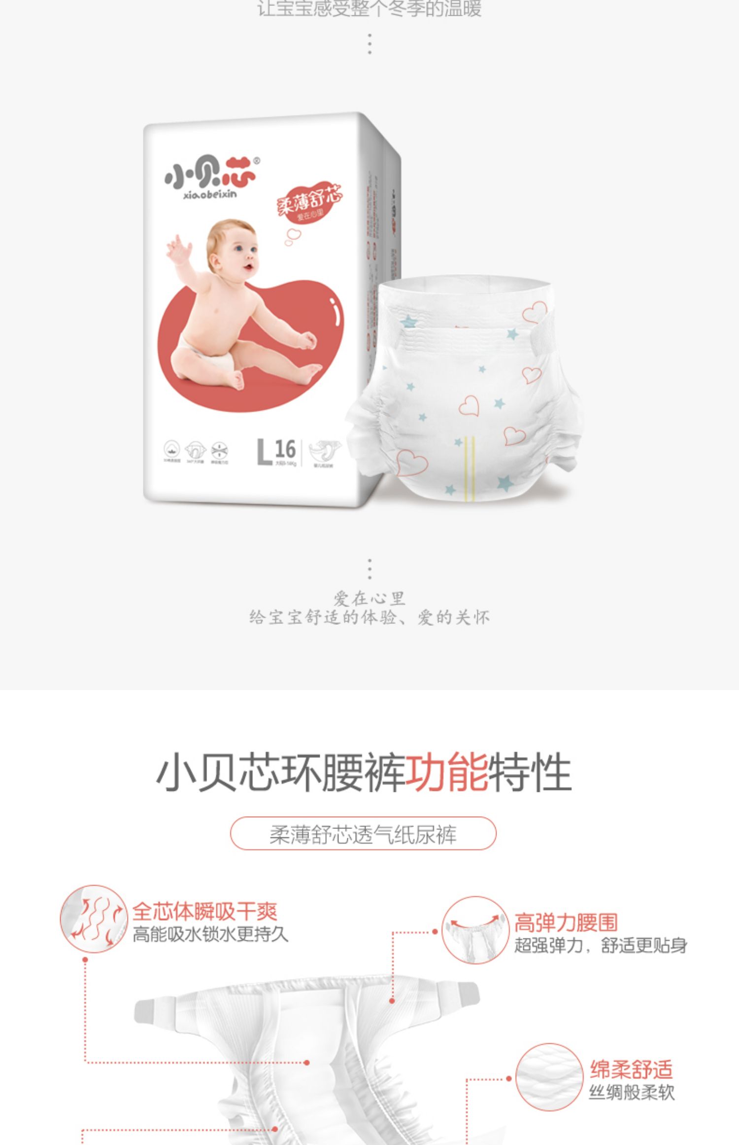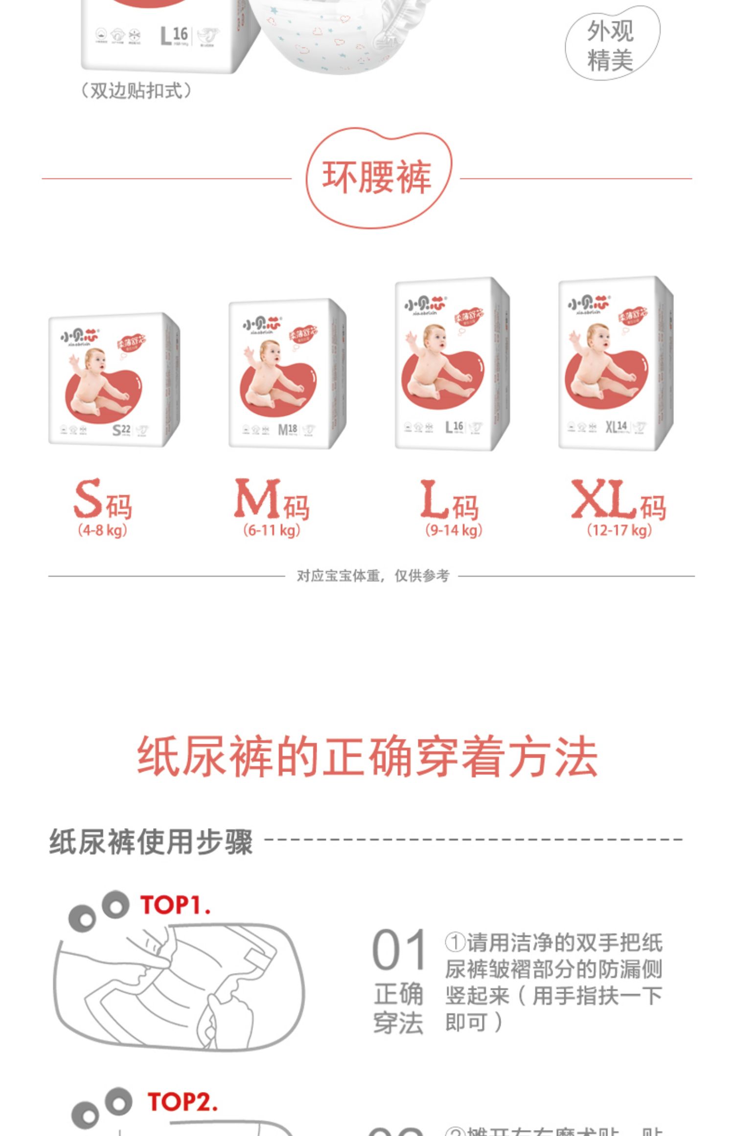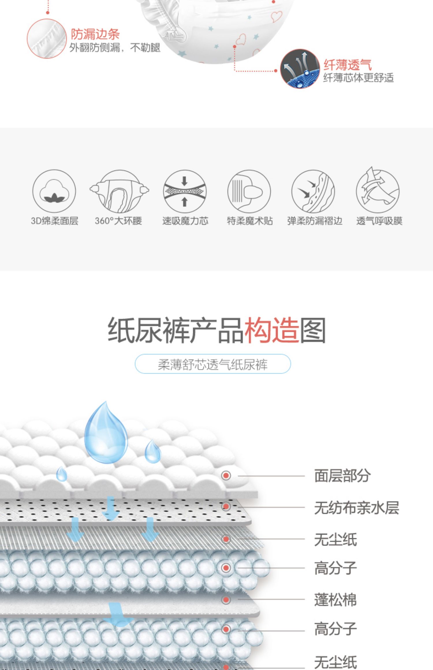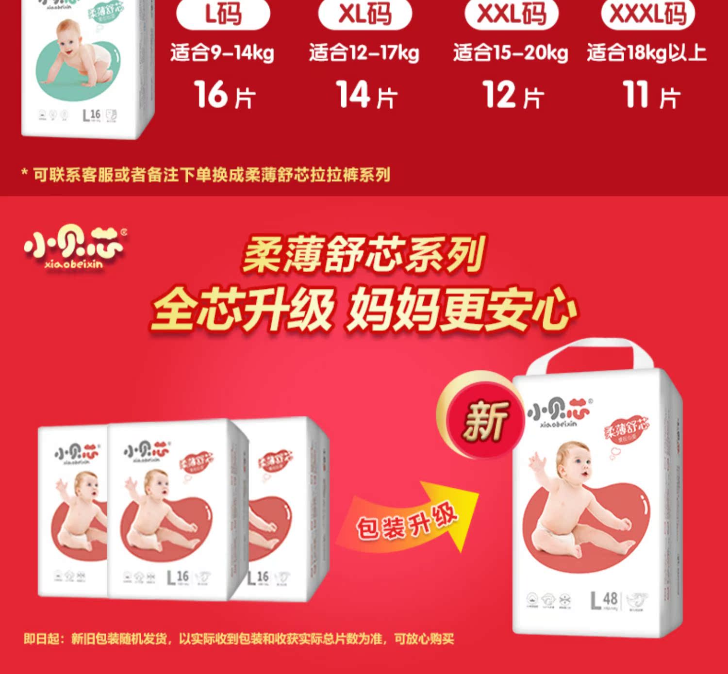 【小贝芯旗舰店】限时秒杀!66片装,码数可选,一片0.35元,全新工艺,超薄透气,不起坨,不断层,柔软舒适,瞬间超快吸收,不红pp。立体防漏侧边,干爽更舒适!纸尿裤和拉拉裤三码任选。