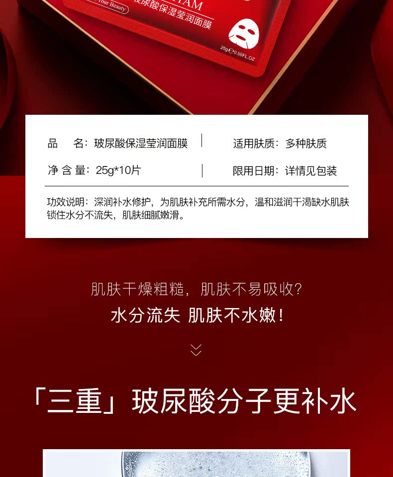 玻尿酸莹润面膜,温和无刺激,美白+紧致+淡细纹+提拉+增强弹性,补水滋养一步到位,扭转时光.肌肤不见年龄,没有丑女人,只有懒女人。【赠运费险】