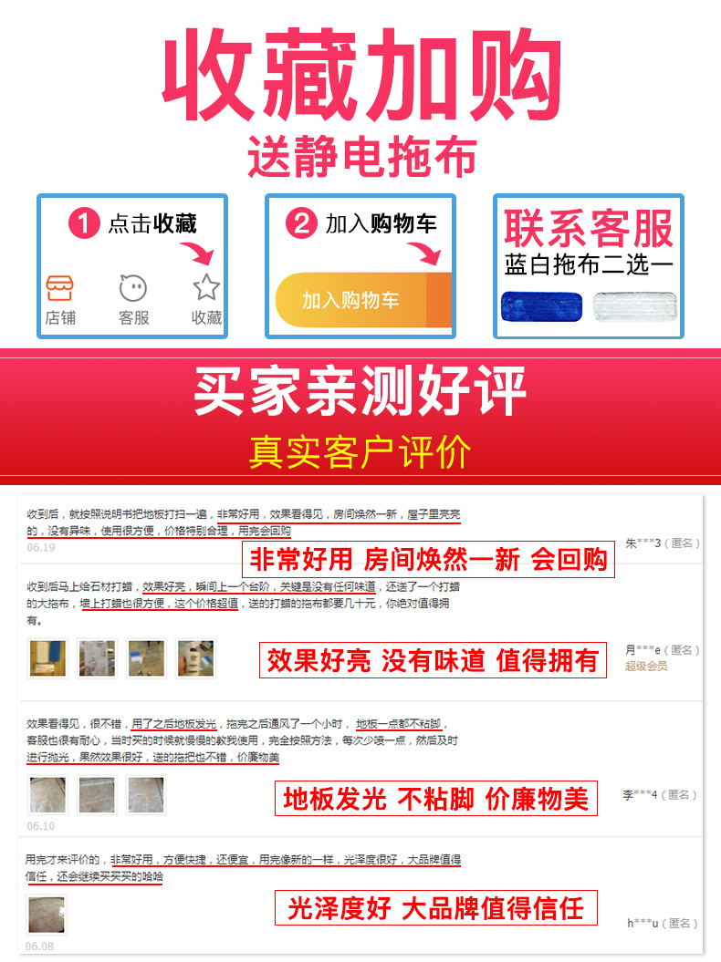 【买就送拖把,买2发3】大理石瓷砖清洁抛光蜡,天然植物树脂精油,防刮去污增亮。保养上光,看得见的效果,试用广泛。