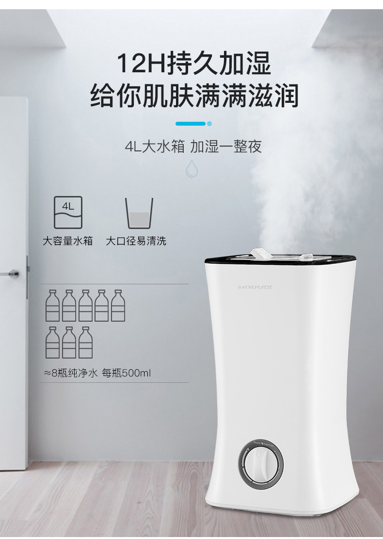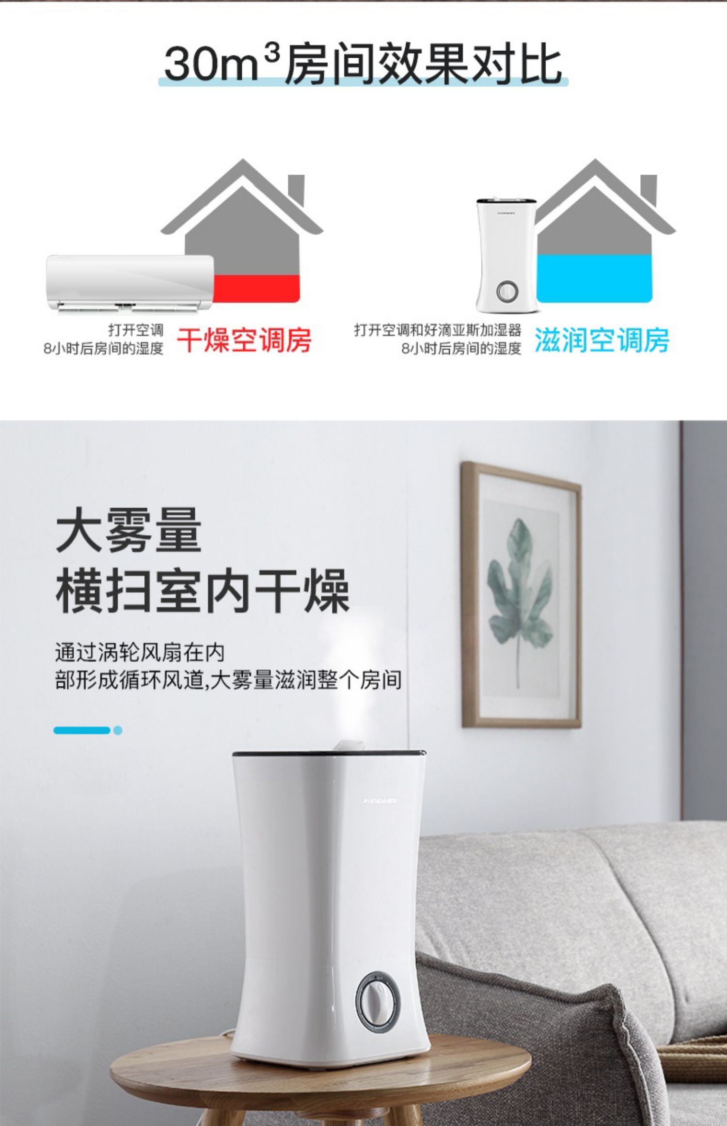 好滴亚斯上加水加湿器,运行时也可加水,4L大水箱,加湿一整夜,飓风聚能环,大雾量,不易沾湿桌面,低噪音,0辐射,婴儿孕妇也能放心使用~