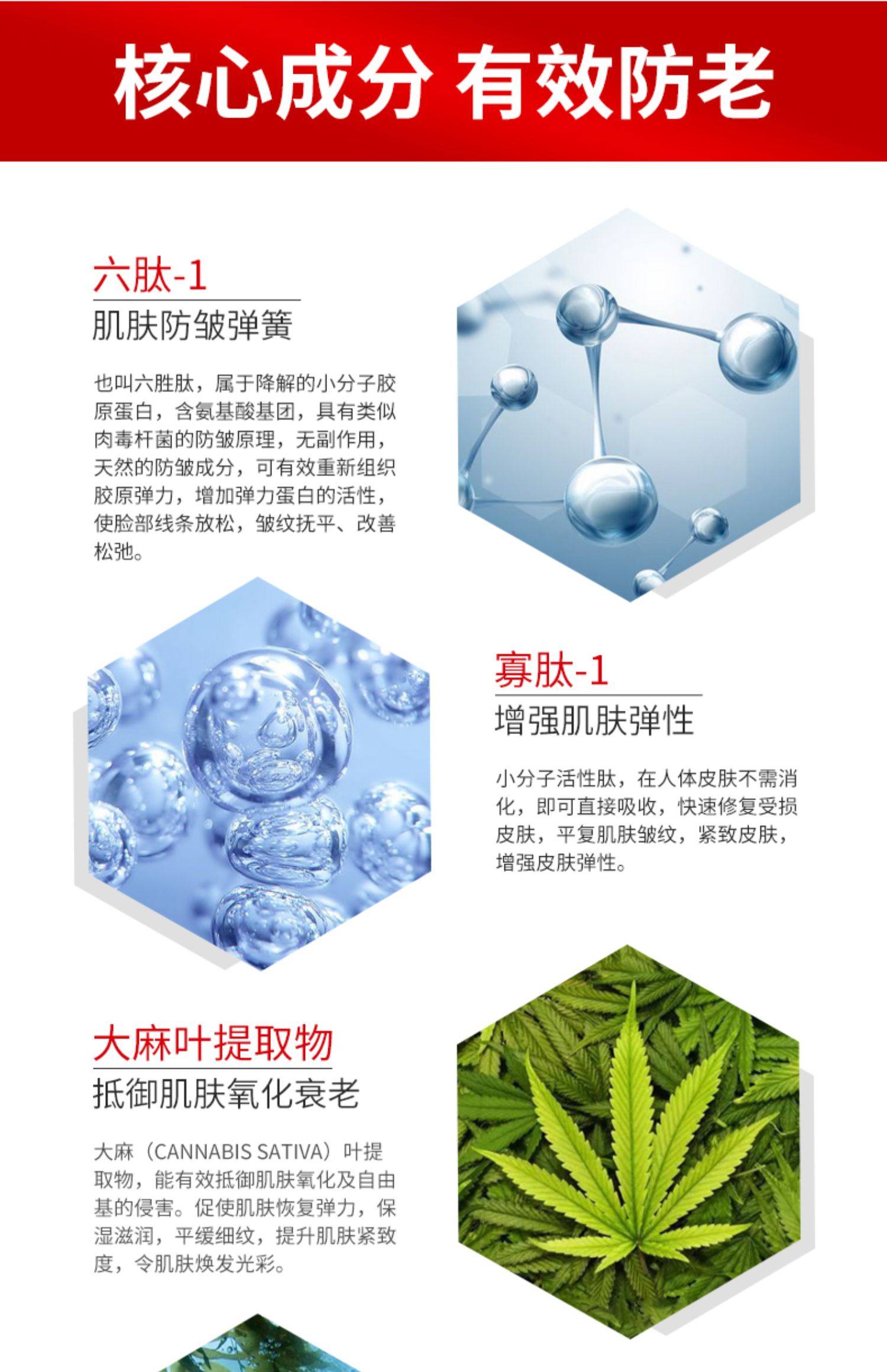 西毕帝六胜肽原液,留住时光,拒绝衰老!汉麻六胜肽,细腻肌肤纹理,抵御自由基侵害,增强弹性细腻度,抚平干纹细纹,改善松弛,提拉紧致,立体紧塑,年轻上扬【赠运费险】
