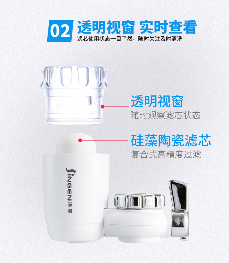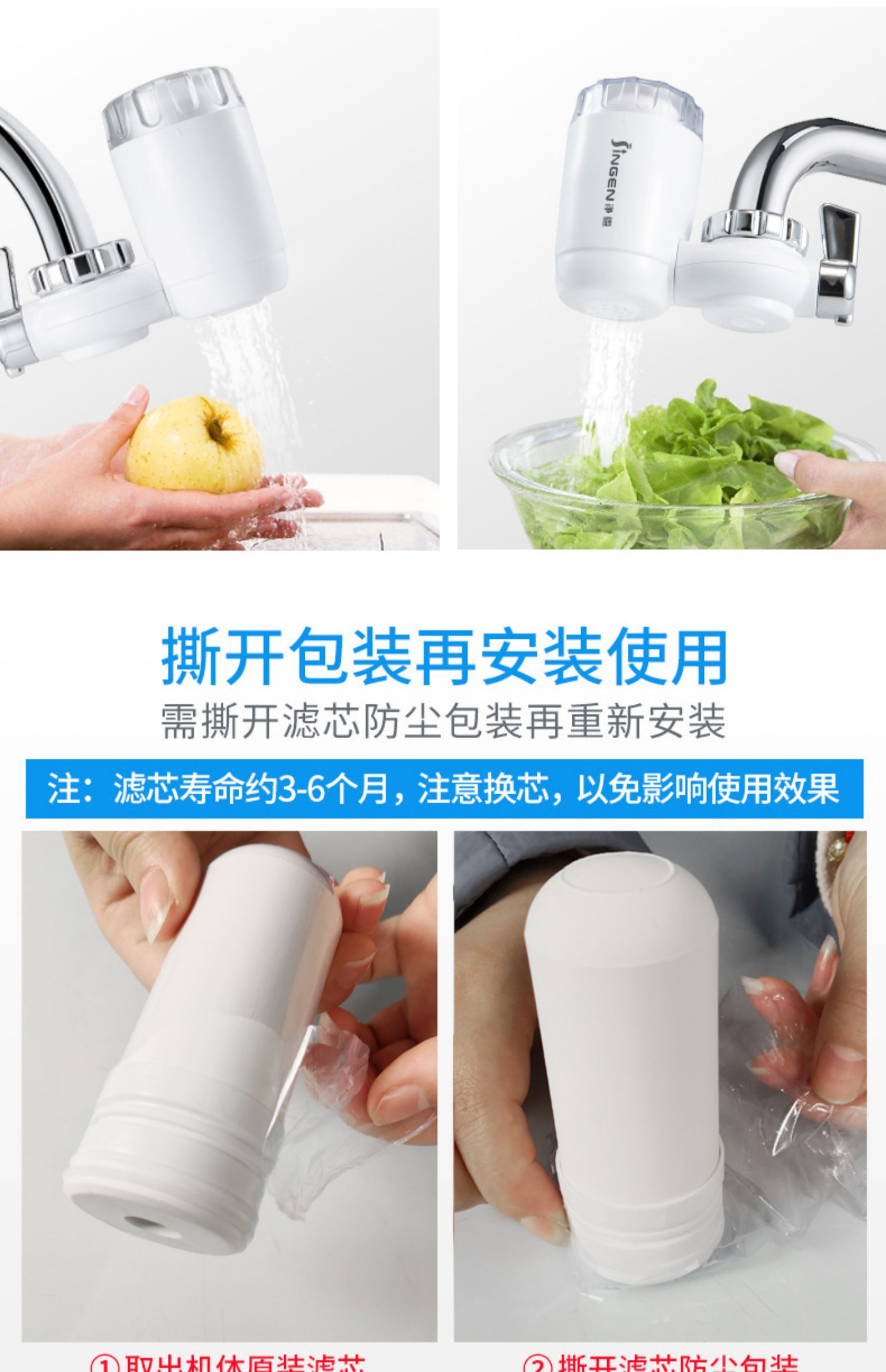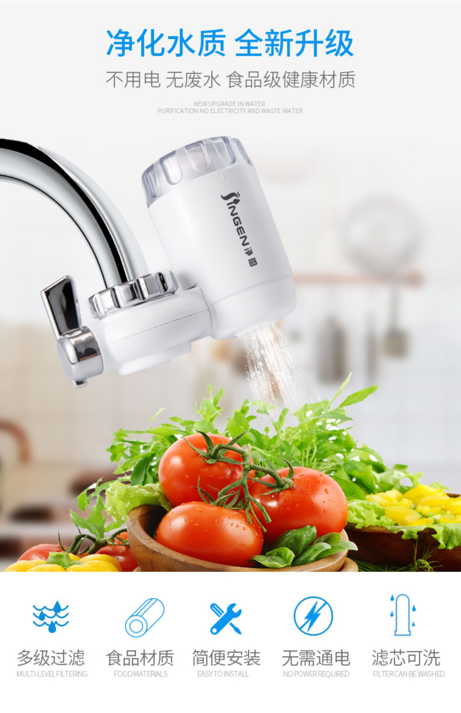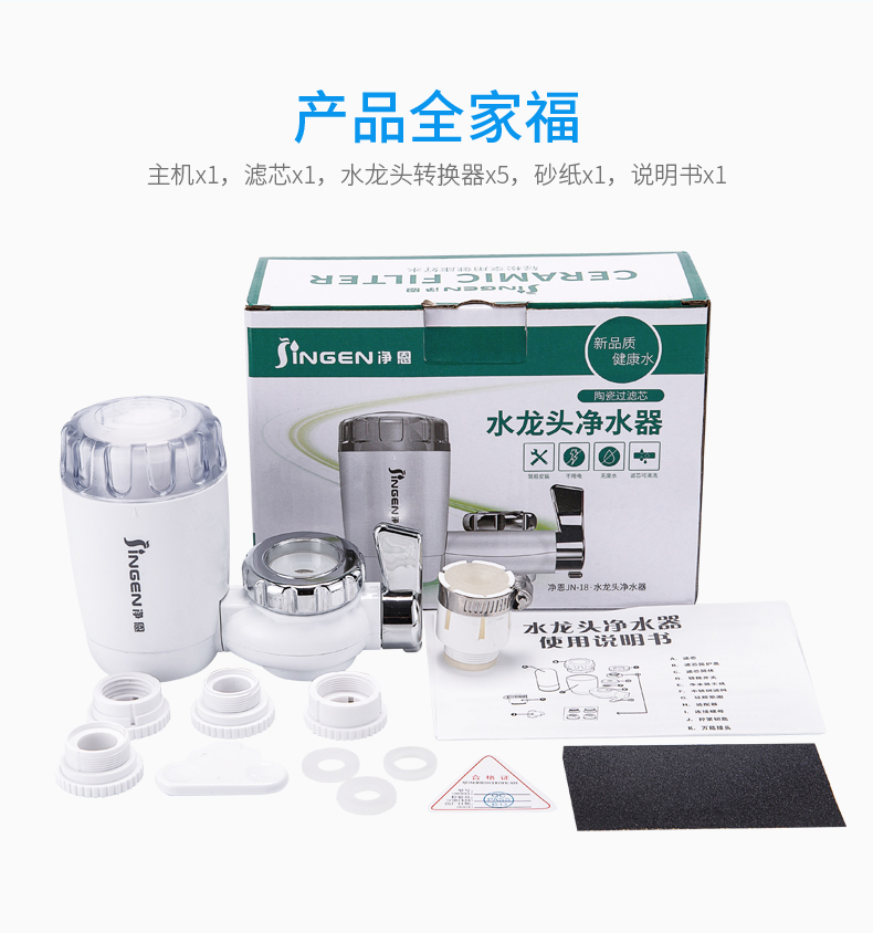 净恩JN-18水龙头净水器家用新款花洒式出水,7个安装接头,7层精密过滤,拦截杂质,双档模式,让家人喝上放心水。