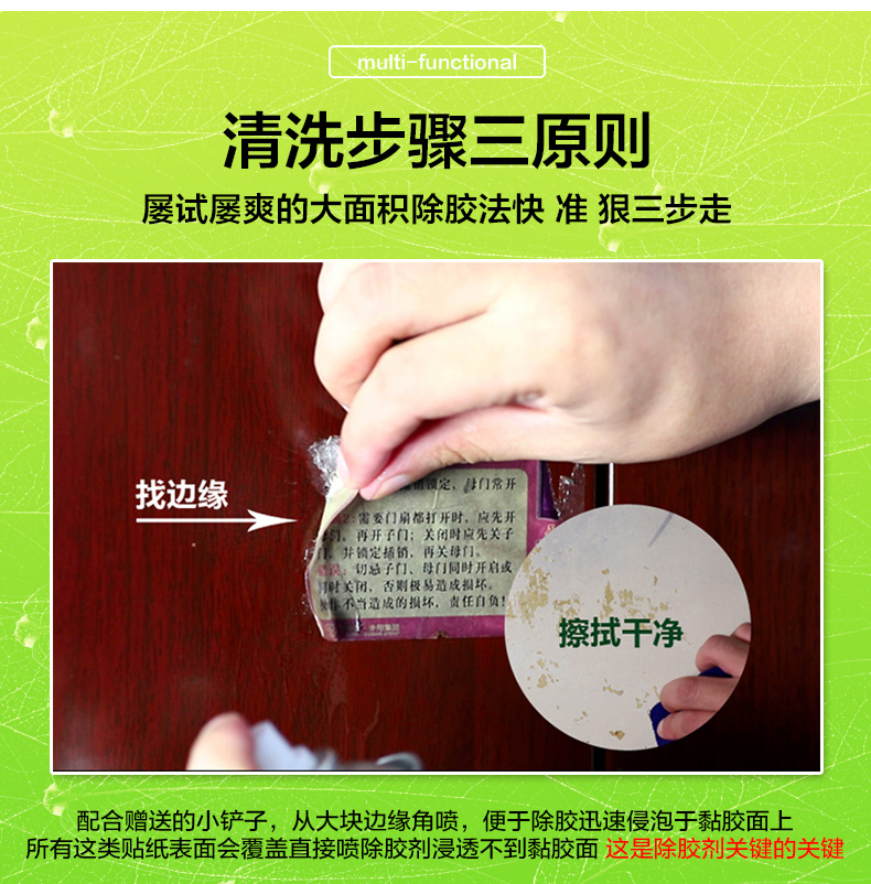 【买就送除胶铲+毛巾】门上汽车上被贴的小广告终于可以彻底清除掉啦!采用绿色配方,深层渗透,溶解快,不伤原件,环保安全,一喷一擦,轻松去胶!【赠运费险】
