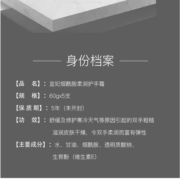 宜妃21年国货品牌,商超同款~烟酰胺护手,拒绝暗黄,还你亮丽肌肤,补水保湿还能美白哦,滋润您的皮肤,让整个冬天,都不太冷。【适合各种肤质人群】【过敏包退】